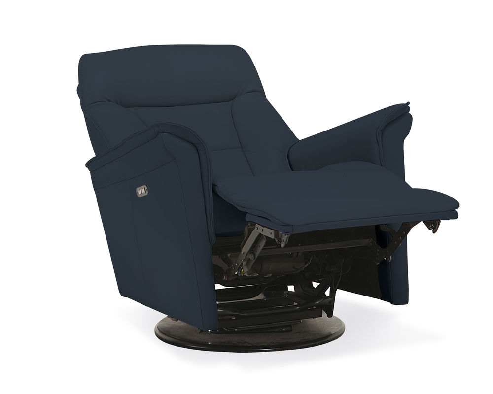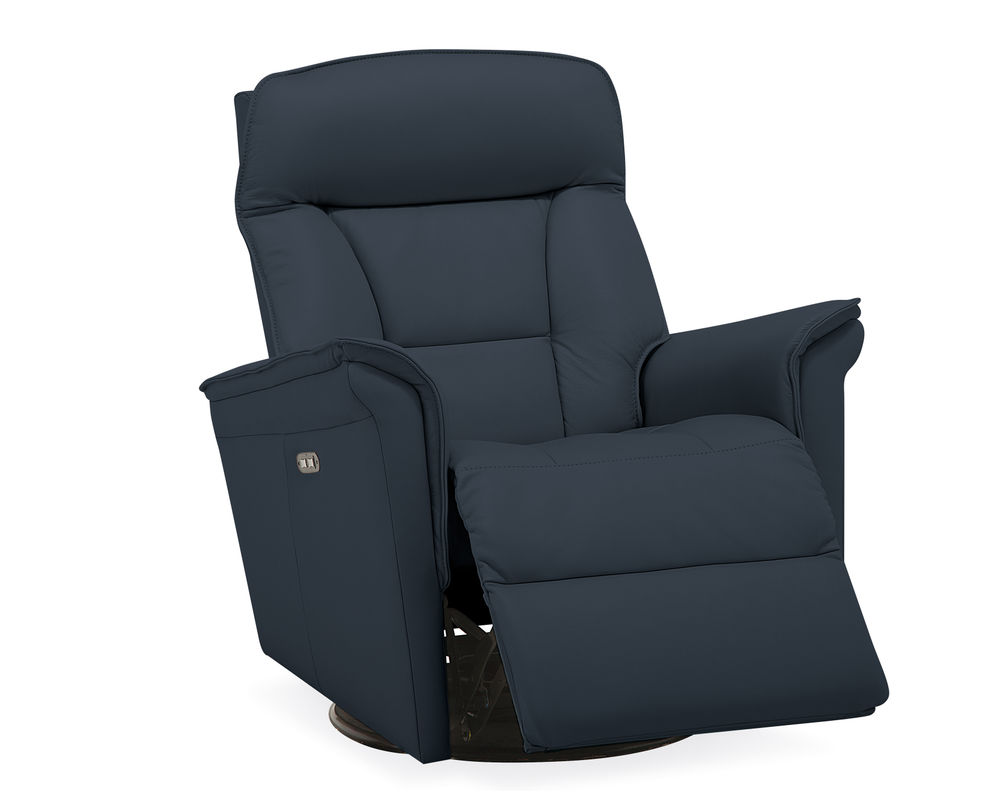 • Power recline and power headrests operated by a brushed metal power switch with integrated USB charging
