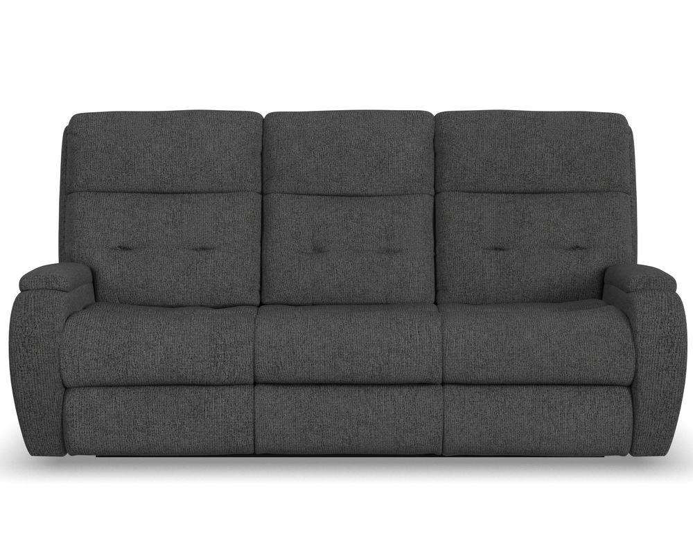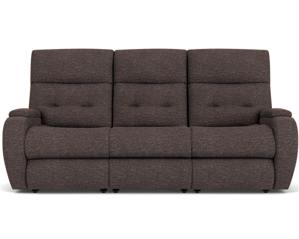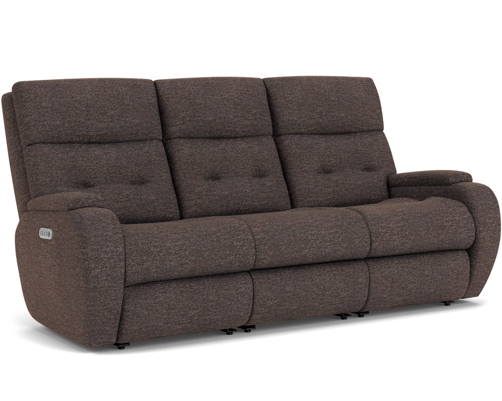 The Strait Reclining Sofa is the ideal piece of furniture for ultimate relaxation. This power sofa provides you and your family with dual power reclining and power headrests so you can find the perfect position, with the added bonus of a zero-gravity feature to evenly distribute your weight. The high back and biscuit tufting provide ample space to relax, while the padded arms add a decorative element. Plus, the USB port with zero-draw technology ensures your devices are always charged. Built with our patented Blue Steel Spring, this sofa provides flexibility and support for years to come. With over a hundred fabric options to choose from, you can find the perfect match for your existing decor. Let the Strait Reclining Sofa envelop you with comfort and relaxation!