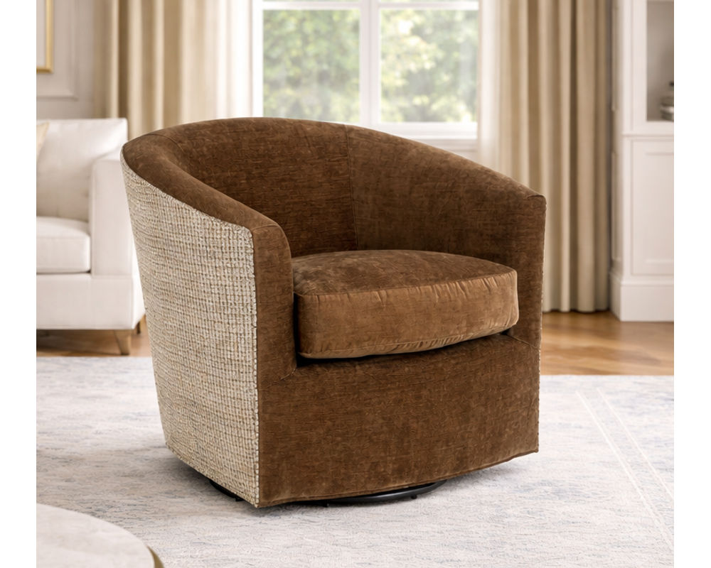 ■ Casual modern barrel chair design available as a swivel or swivel glider