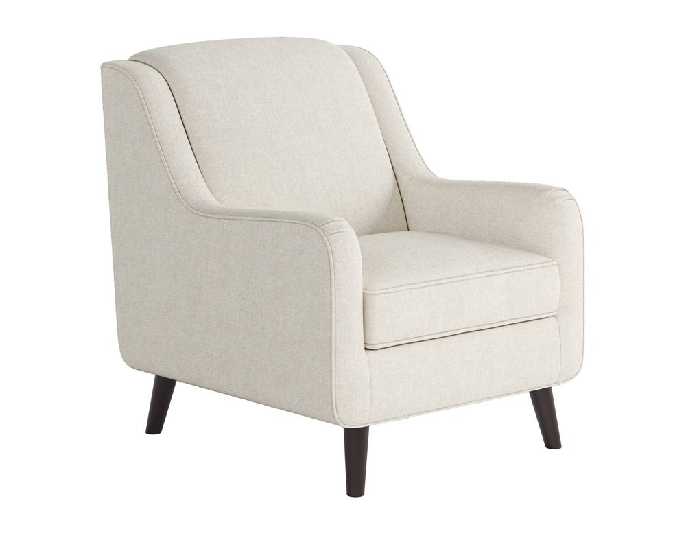 Introducing the Sugarshack Glacier Accent Chair 240-C, the perfect addition to any home decor. This stunning chair features a unique design with sloped arms and an outside arm welt, giving it a modern and stylish look. The loose cushion, tone-on-tone print, and coffee-finish splayed legs add to its charm, making it a conversation piece in any room.