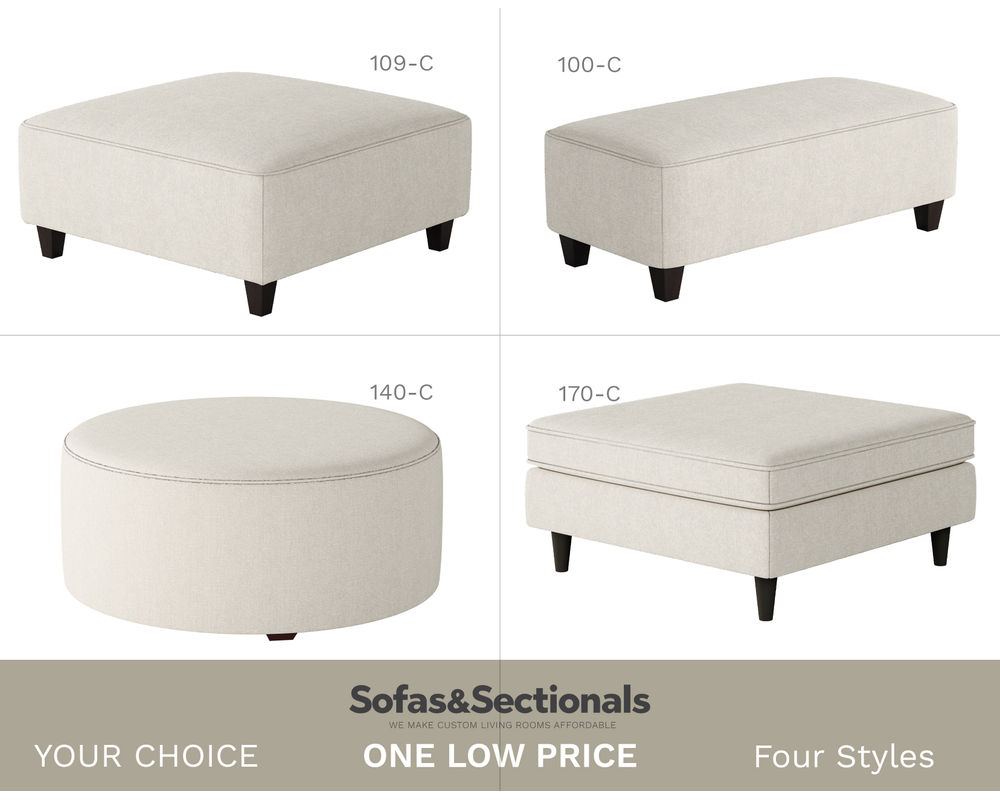 For a unique touch, the 39" oval (round) cocktail ottoman (140C) is the perfect choice. Its sleek and modern shape, a departure from the traditional square design, will add a touch of elegance and intrigue to any room.