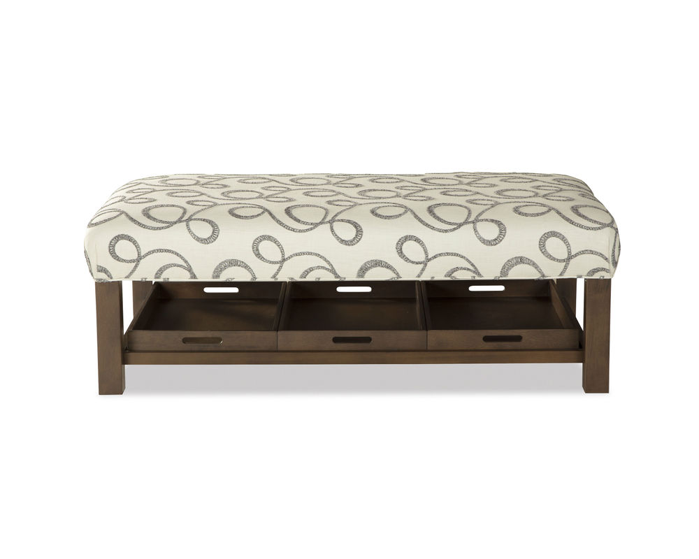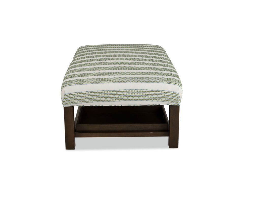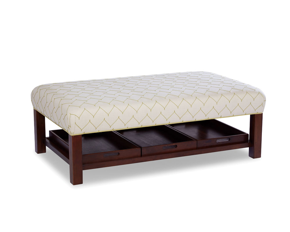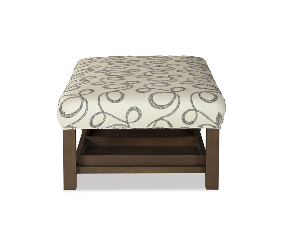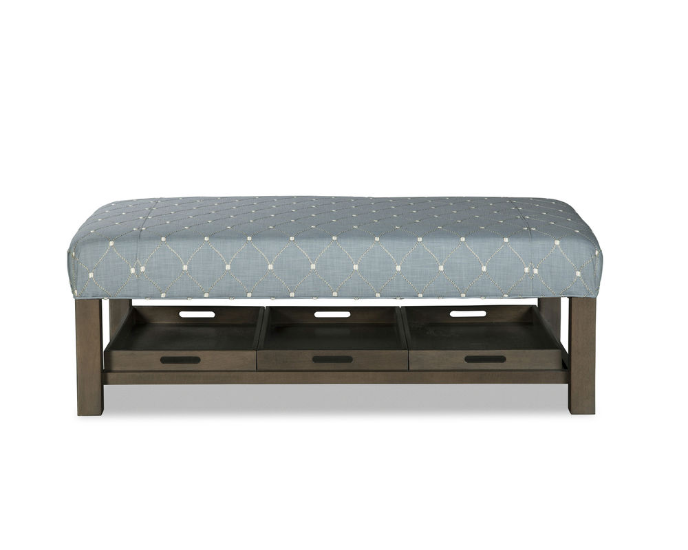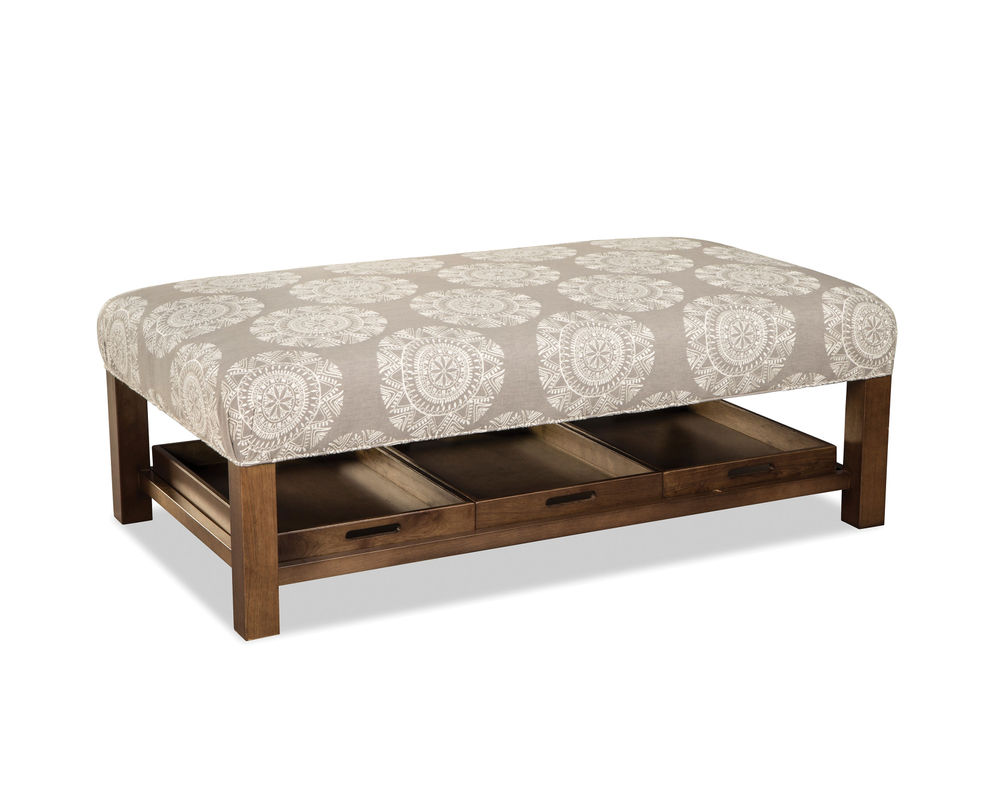 You'll love this generously scaled cocktail ottoman for it's looks, but you'll really enjoy its functional side too. A part of the Paula Deen Home collection, it features a plush top and handsome transitional lines. But hidden underneath is the real prize- a trio of matching trays - perfect for snacks, beverages, or even a game. Use them anytime or all the time! Available in any finish, any fabric! Over 100 performance fabrics.