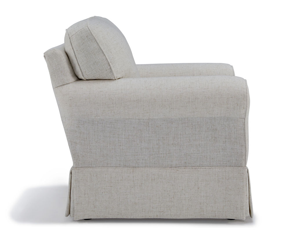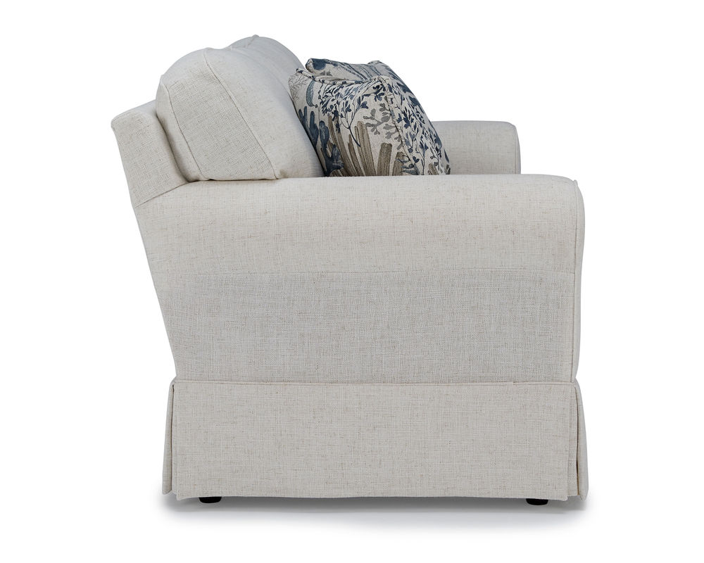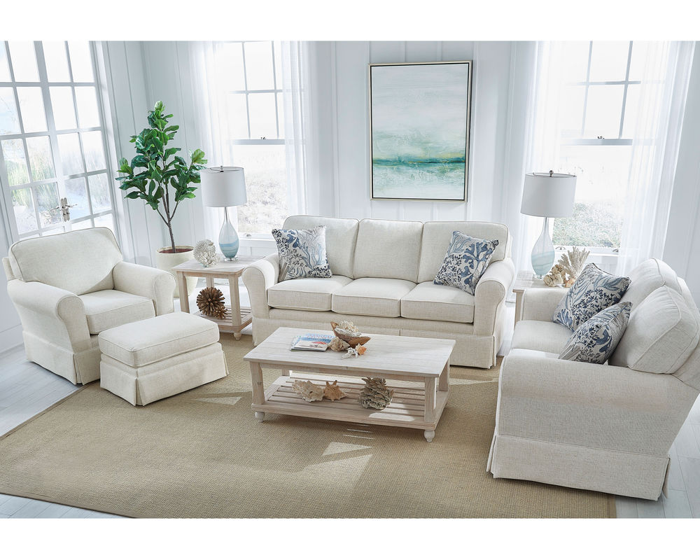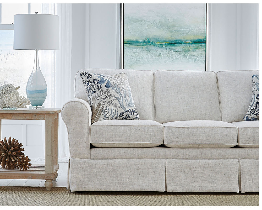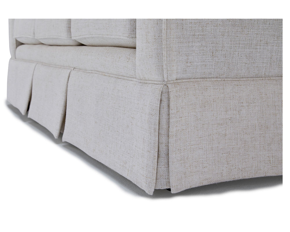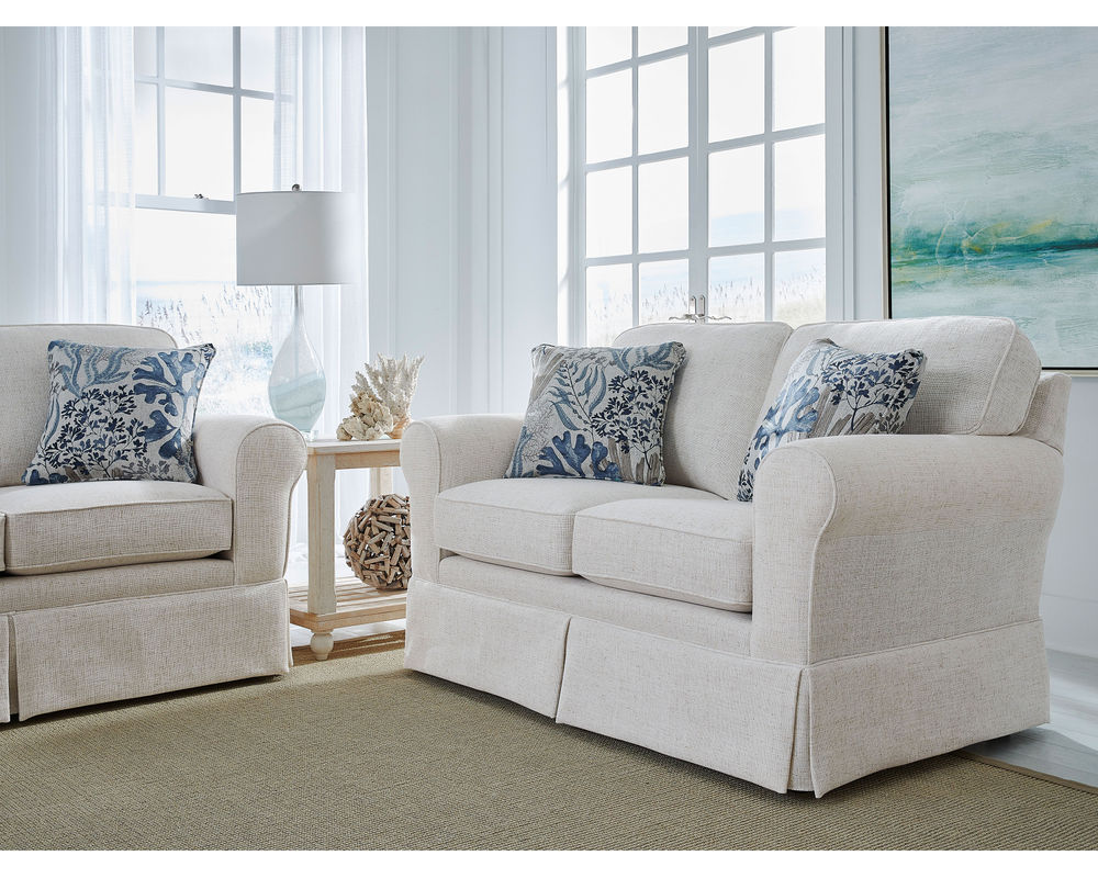 The Susanna Collection features a sofa, loveseat, club chair, and ottoman, all designed with a hand-tailored skirted frame that adds a touch of elegance to your home. The semi-attached pillow-back cushions, designed to provide a luxurious feel, also offer easy access to adjust the pillow fibers for a personalized seating experience, making you feel pampered in your own home.