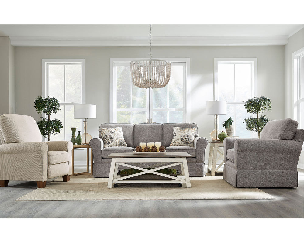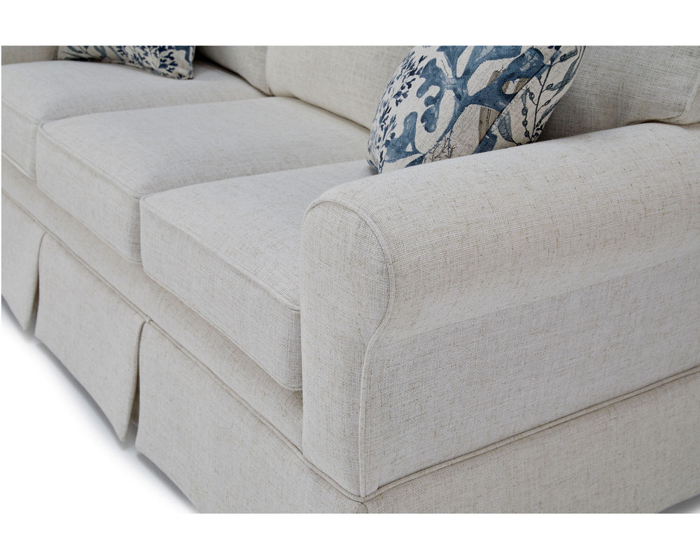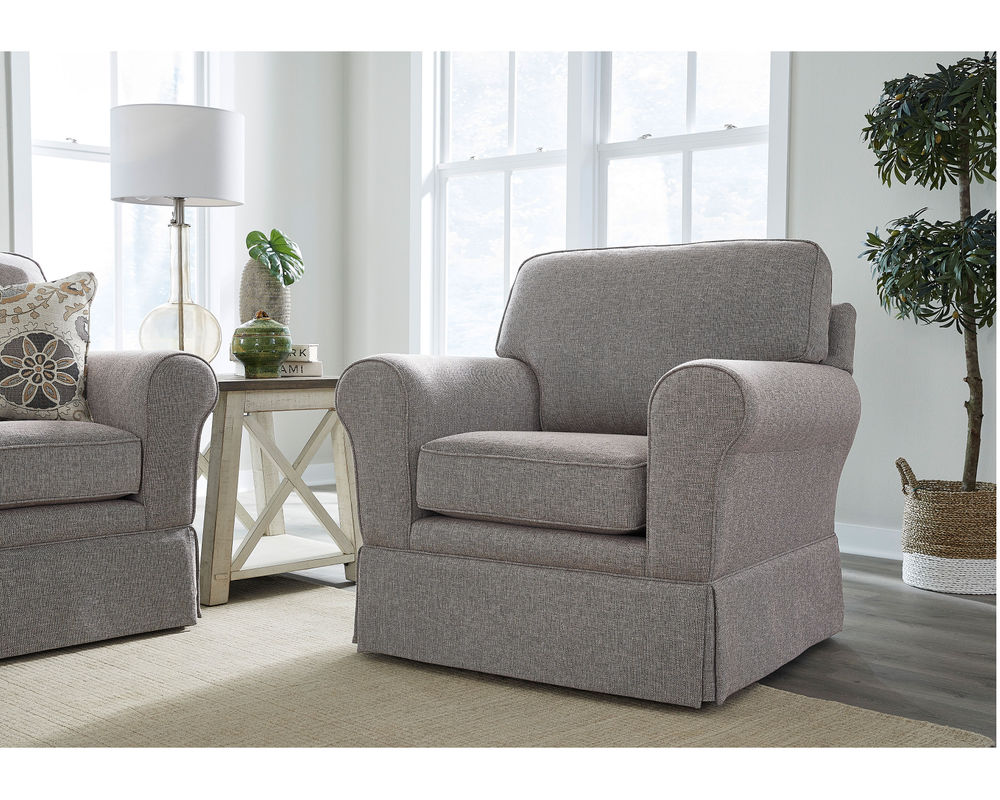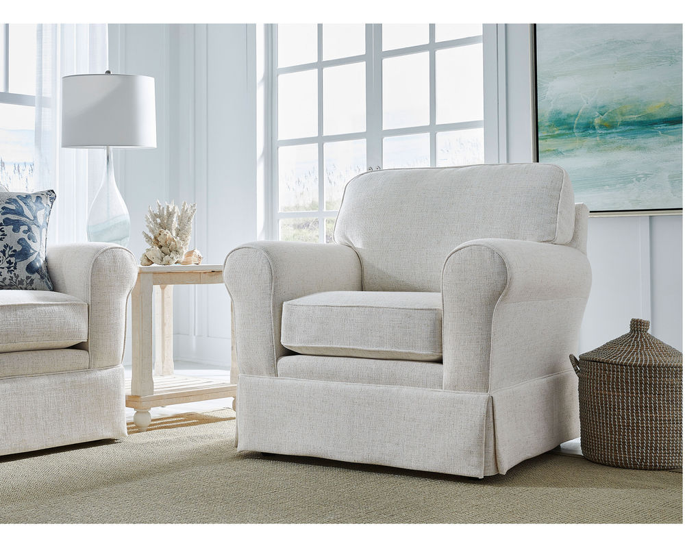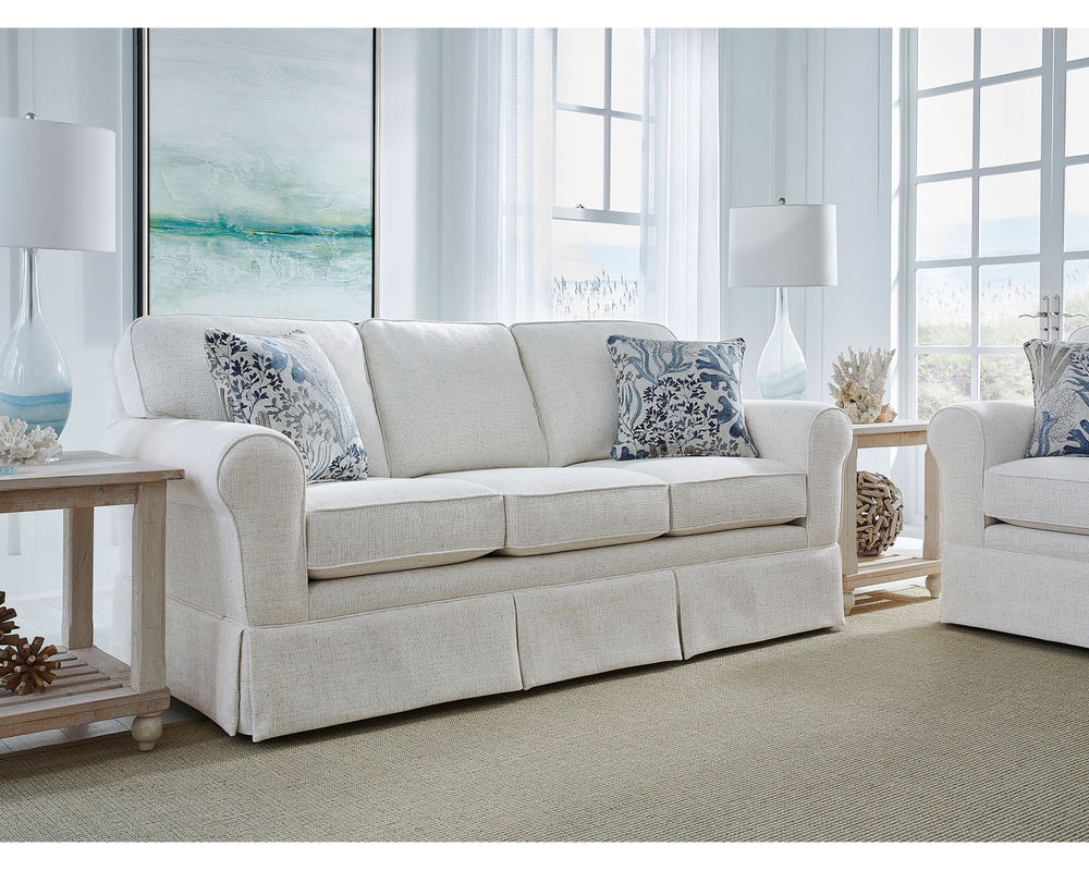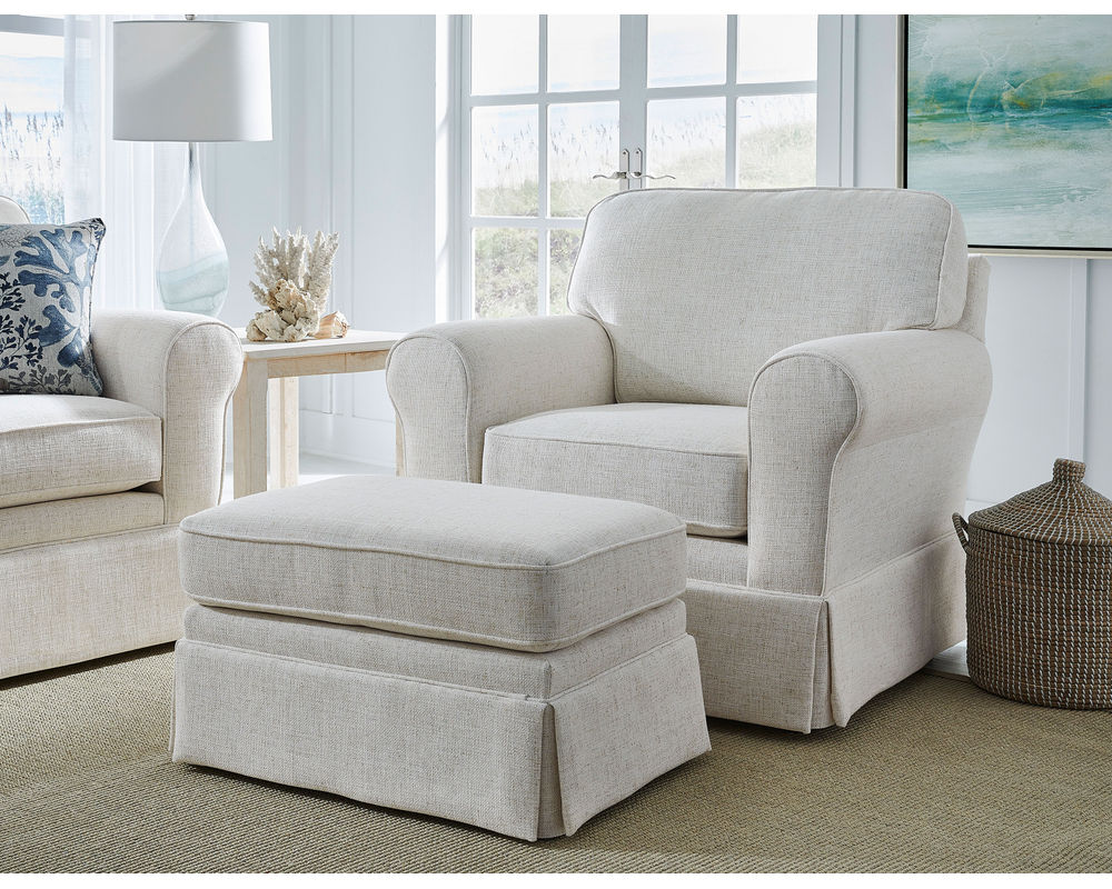 The Susanna Collection features a sofa, loveseat, club chair, and ottoman, all designed with a hand-tailored skirted frame that adds a touch of elegance to your home. The semi-attached pillow-back cushions, designed to provide a luxurious feel, also offer easy access to adjust the pillow fibers for a personalized seating experience, making you feel pampered in your own home.