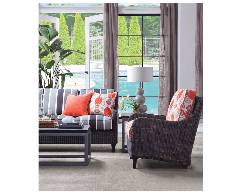 The Tanglier collection features high quality synthetic rattan in a warm and inviting sable finish. With over 150 high performance outdoor fabrics and fast drying cushion cores this is the perfect outdoor set for your outdoor room. The High performance outdoor fabrics are also available on all indoor upholstered furniture.
