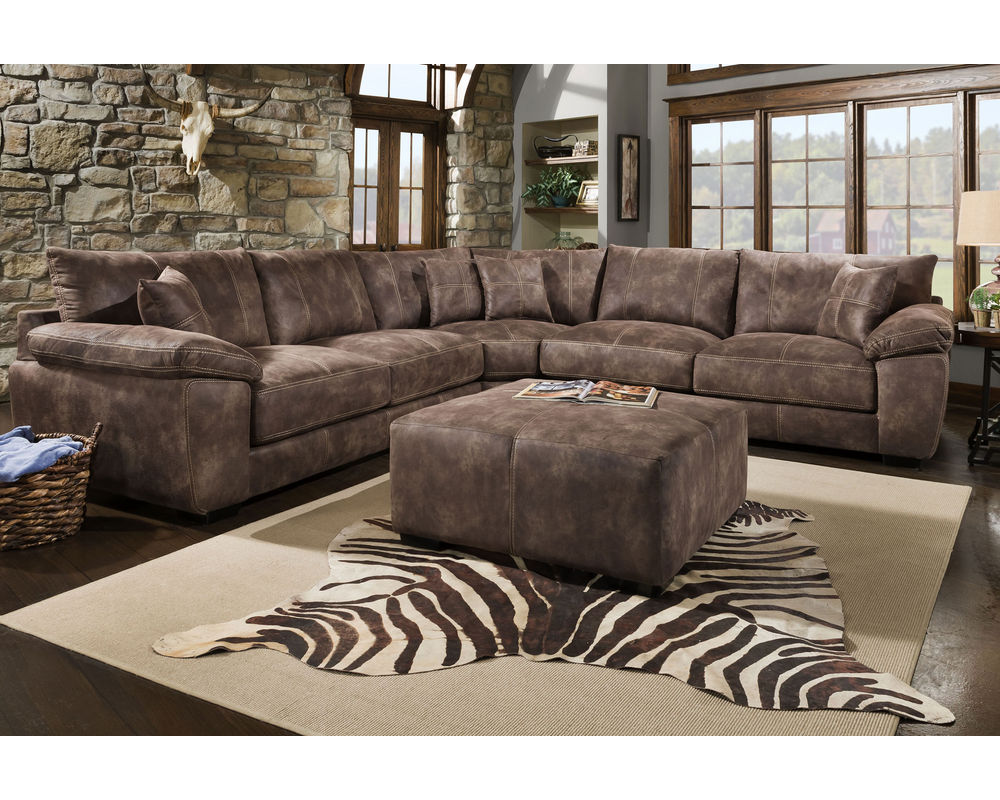 Giving you the look of well-aged leather without all of the time commitment and none of the cleanup, the 840 Teagan Stationary Sectional is a plush, lavish sectional sofa that can comfortably accommodate the entire family. This sectional features five different seats for your family to relax on, including the corner seat in the center of the sofa. There are loose seat back cushions that will not only make it easier for you to adjust them how you want them when you relax, but it will make it easier to clean them when it comes time as well. The 840 Teagan Stationary Sectional features huge, overstuffed saddle arms on either side of the sofa which will provide you with a comfortable place to lean when you want to relax. The base of this sofa conceals the feet for a more minimalistic appearance.