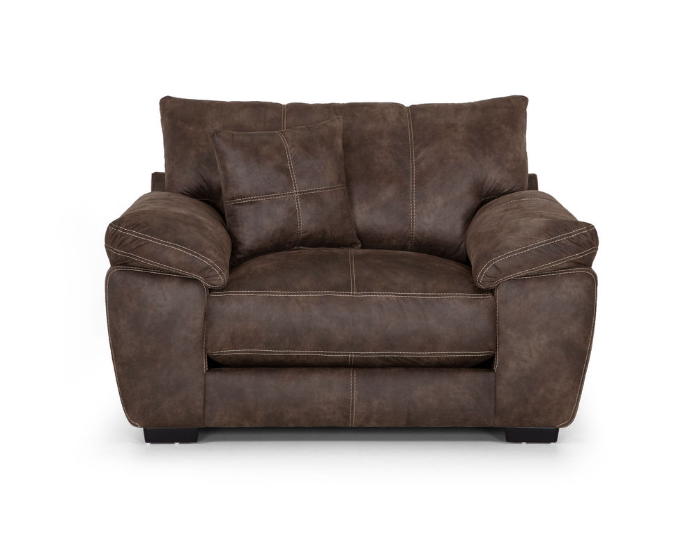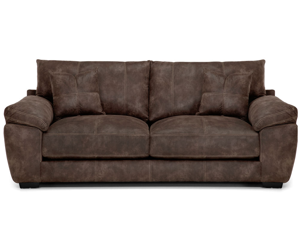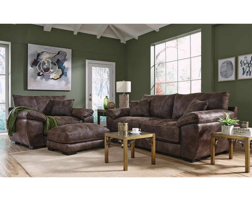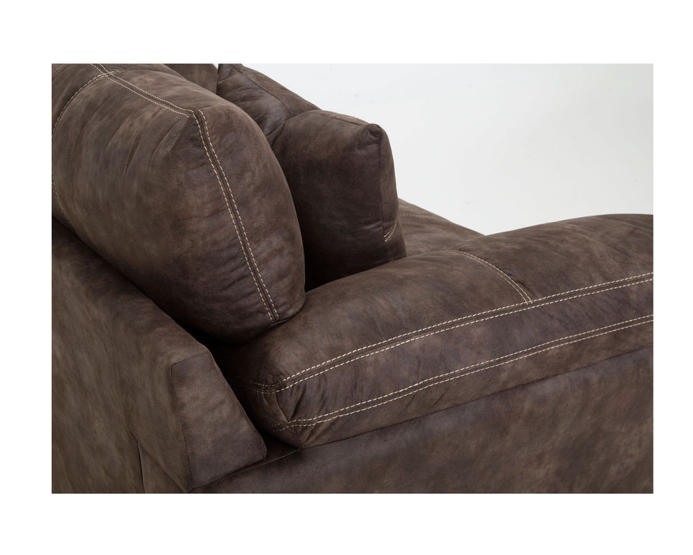 Enjoy the leather look you love without all of the upkeep that leather comes with when you bring home the Teagan 95" Sofa by Franklin. The Teagan 95" Sofa by Franklin is a large and accommodating sofa that has a leather-like upholstery cast in a rich chocolate brown that will easily fit into any traditional or transitional living space you want to set it in. Propped up against the rigid back of the couch are two ultra-soft and plush cushions that provide your back with the support that it needs. They are unattached, making it simple to adjust them as needed. Below, there are two large and spacious seat cushions that provide the same level of support and comfort as the back cushions. On either side of these cushions are saddle arms, providing you with plenty of support no matter how you rest against them.