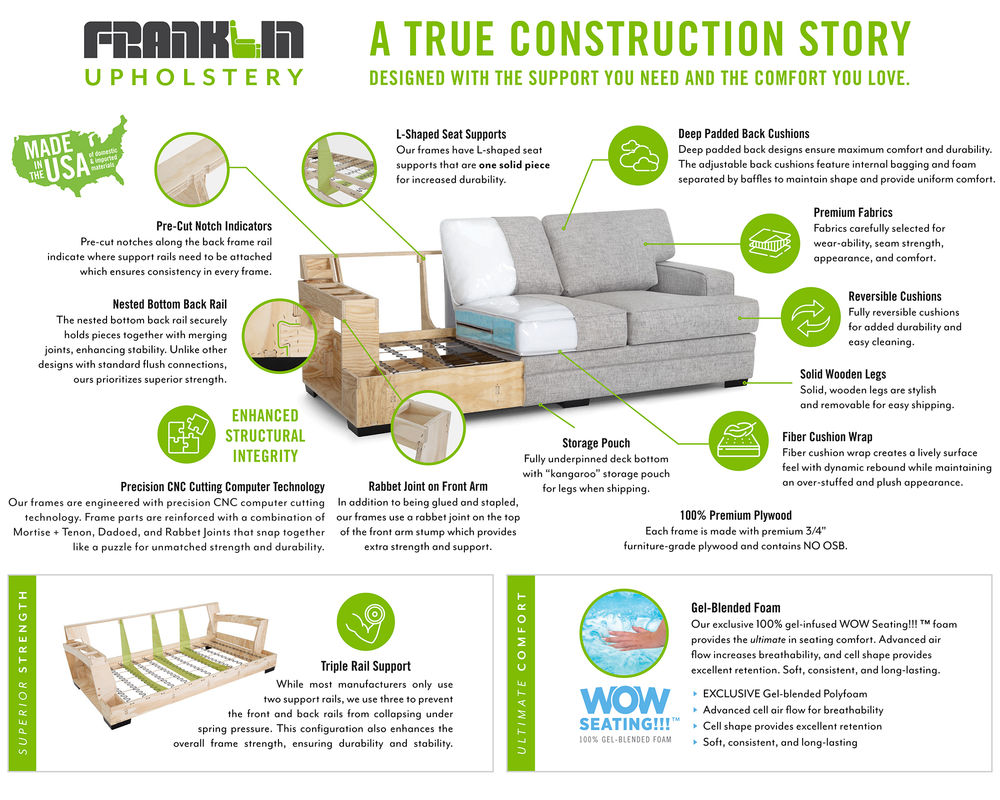 At Franklin we are passionate about our product. Quality is not just a word to us, but an obsession. We fabricate our own foam, stamp our own reclining mechanisms, and cut our own wooden frames. We stand behind our product and that is why we are able to offer you the best warranty in the industry.