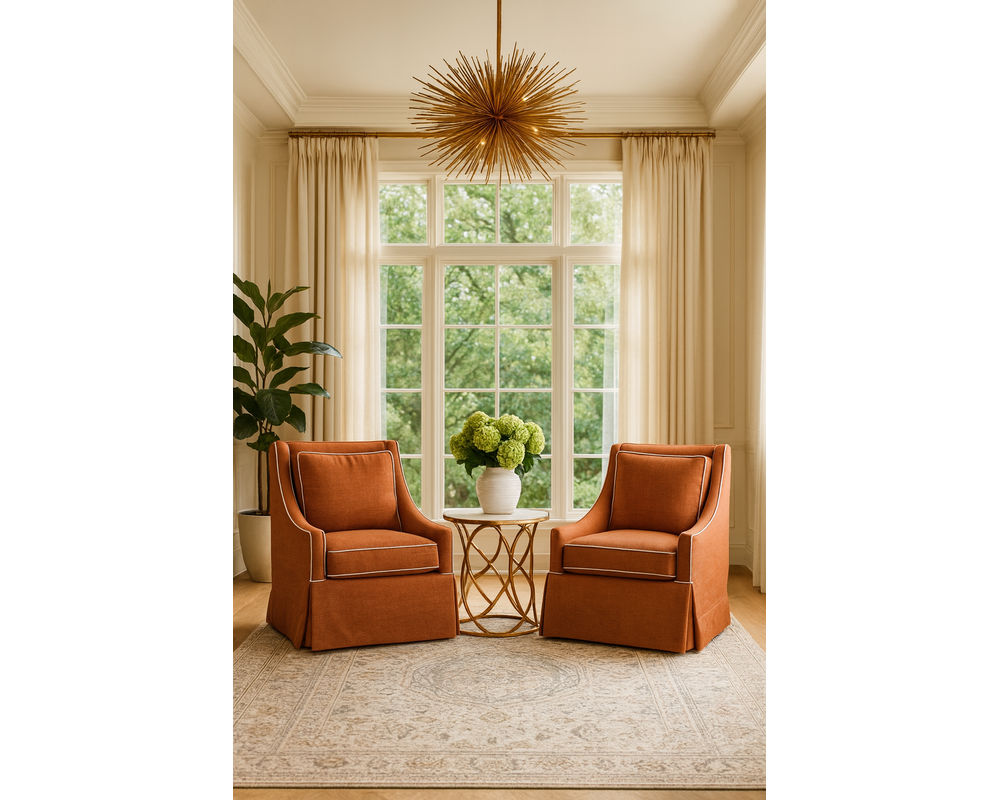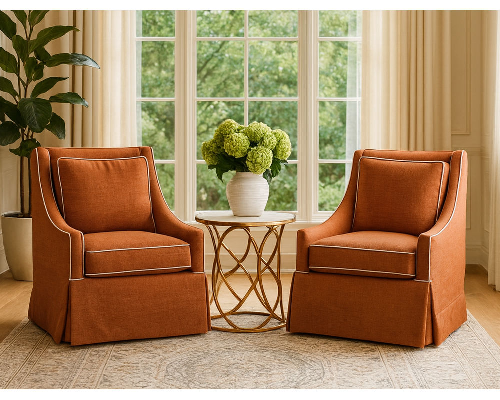 The Tegan Chair blends transitional style with modern versatility, making it a standout piece for any living space. Its gracefully sloped arms and tailored skirt create a refined silhouette, while the option to choose it as a standard chair or swivel chair adds functionality to fit your lifestyle. Whether stationary or in motion, the Tegan Chair offers inviting comfort wrapped in a clean, sophisticated design.
