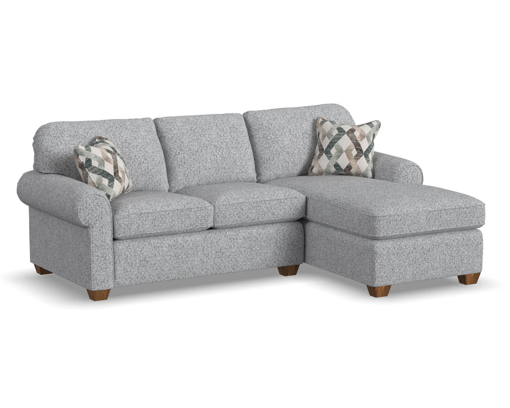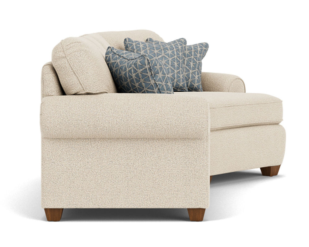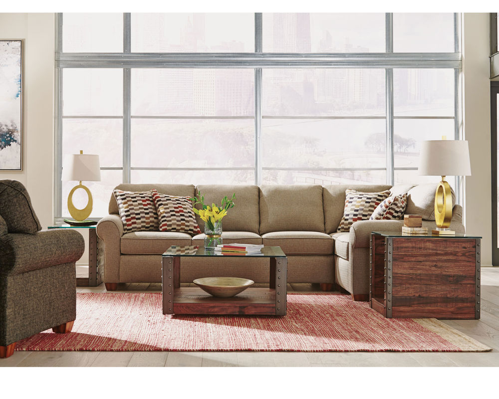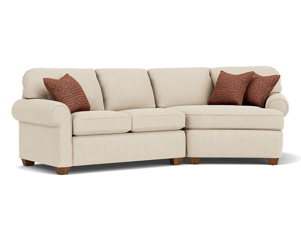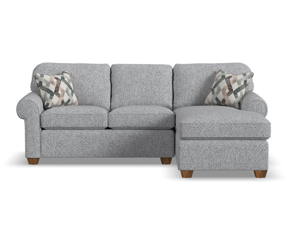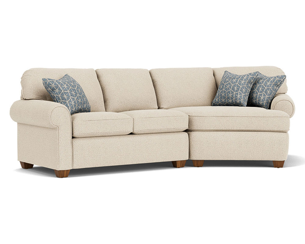 Smooth edges, rolled arms, and exposed block legs give Thornton classic appeal as a living-area staple. Welt cording trims the back and seat cushions for a finishing touch. With multiple seating options, this roomy sectional takes the spotlight in large living spaces.