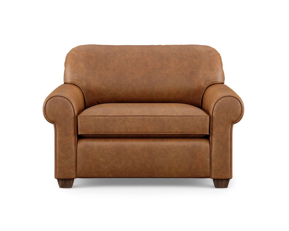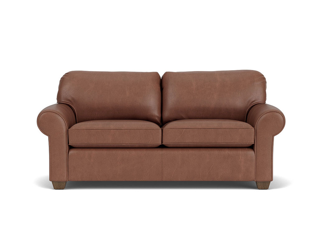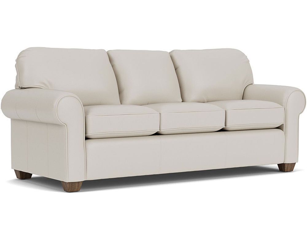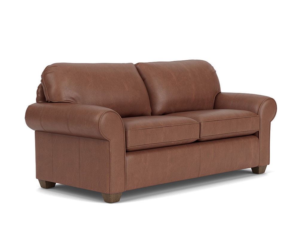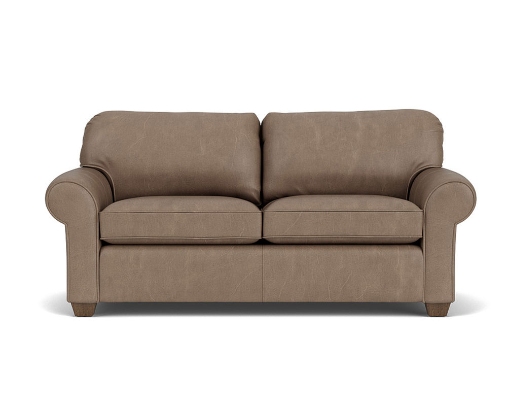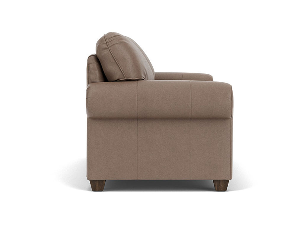 Smooth edges, rolled arms, and exposed block legs give Thornton classic appeal as a living-area staple. Welt cording trims the back and seat cushions for a finishing touch. With materials and construction backed by lifetime guarantees, this style will feel comfortable today and for years to come. Flexsteel only uses the finest leathers guaranteed to last. Over 40 leather colors to select from.