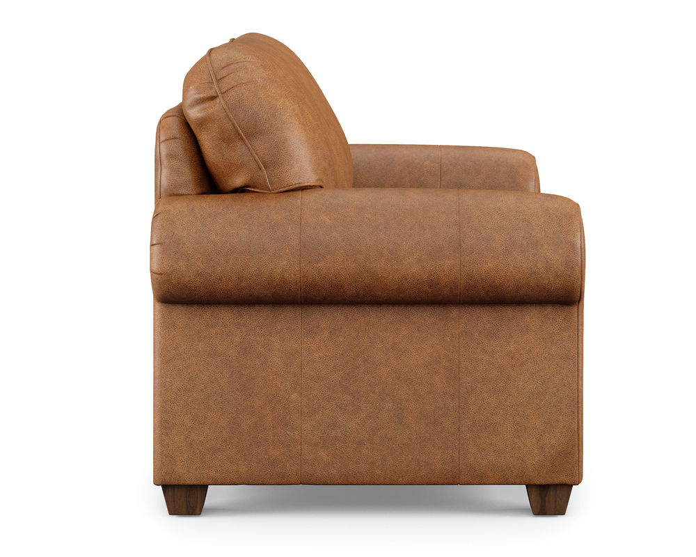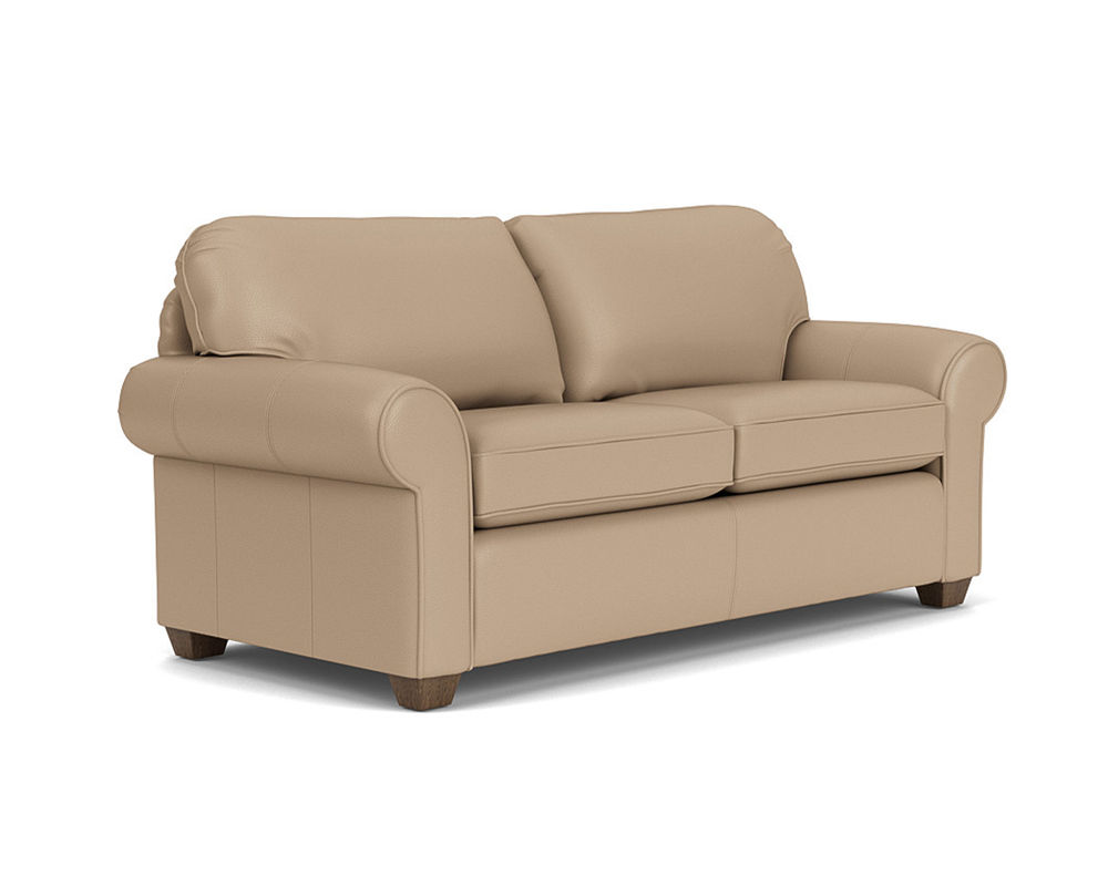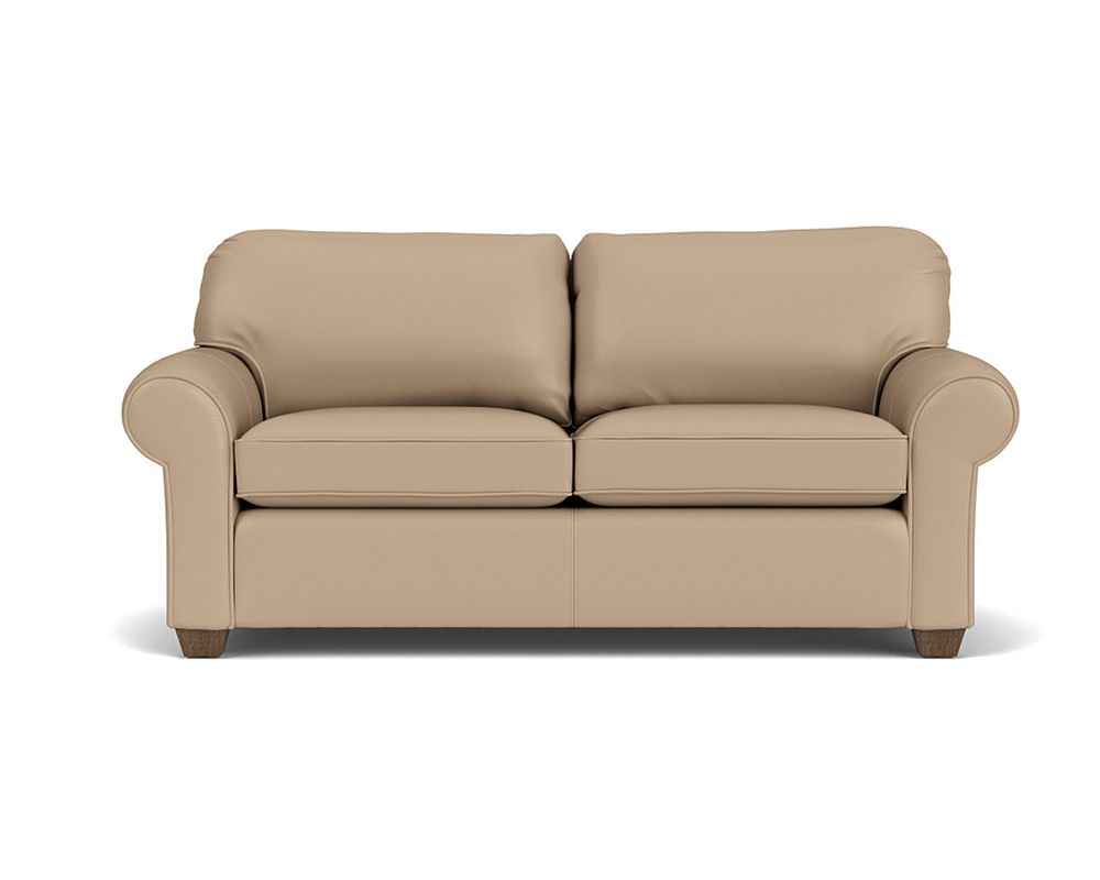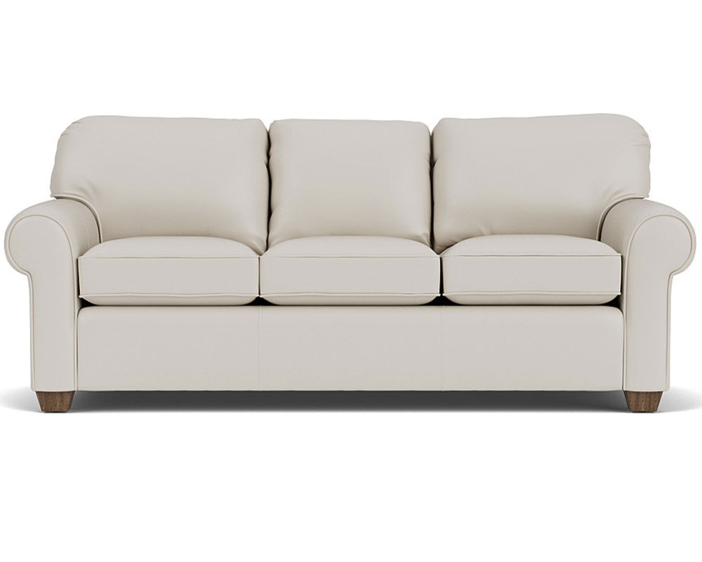 Smooth edges, rolled arms, and exposed block legs give Thornton classic appeal as a living-area staple. Welt cording trims the back and seat cushions for a finishing touch. With materials and construction backed by lifetime guarantees, this style will feel comfortable today and for years to come. Flexsteel only uses the finest leathers guaranteed to last. Over 40 leather colors to select from.