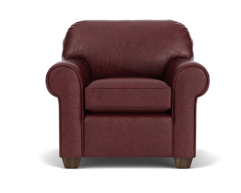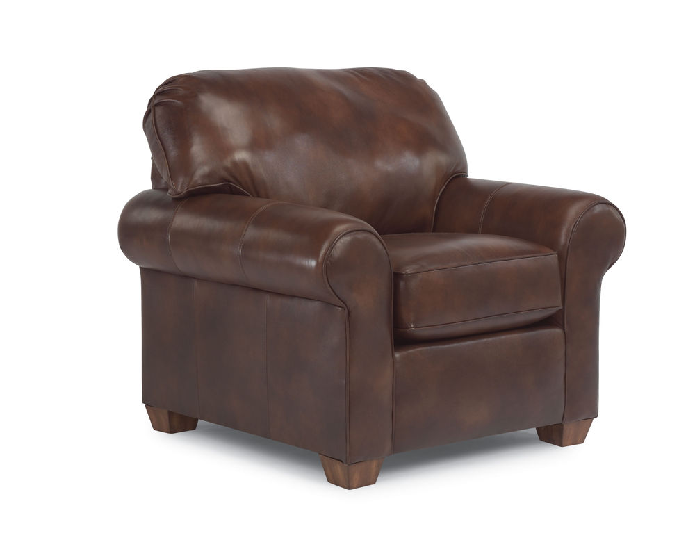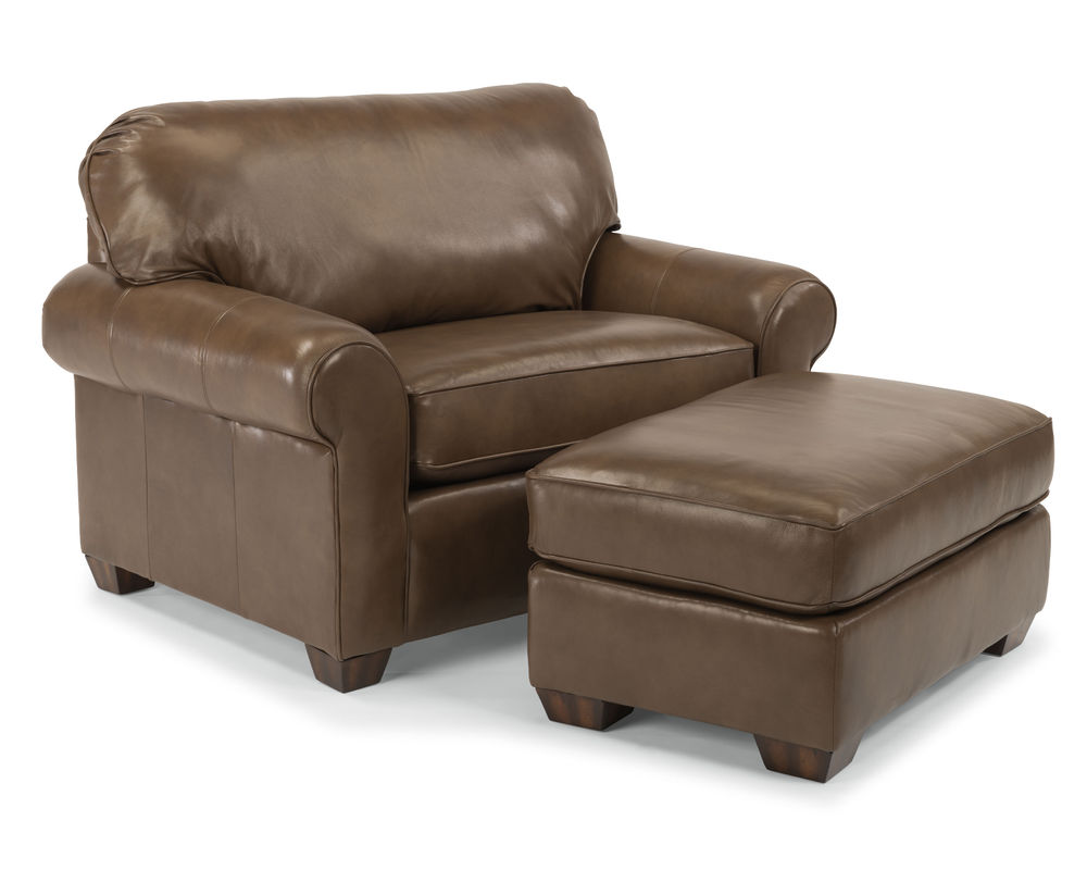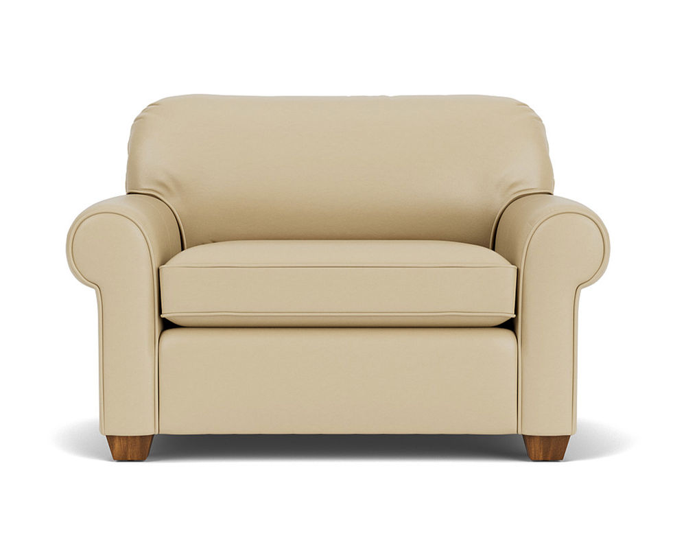 Smooth edges, rolled arms, and exposed block legs give Thornton classic appeal as a living-area staple. Welt cording trims the back and seat cushions for a finishing touch. With materials and construction backed by lifetime guarantees, this style will feel comfortable today and for years to come. Flexsteel only uses the finest leathers guaranteed to last. Over 40 leather colors to select from.
