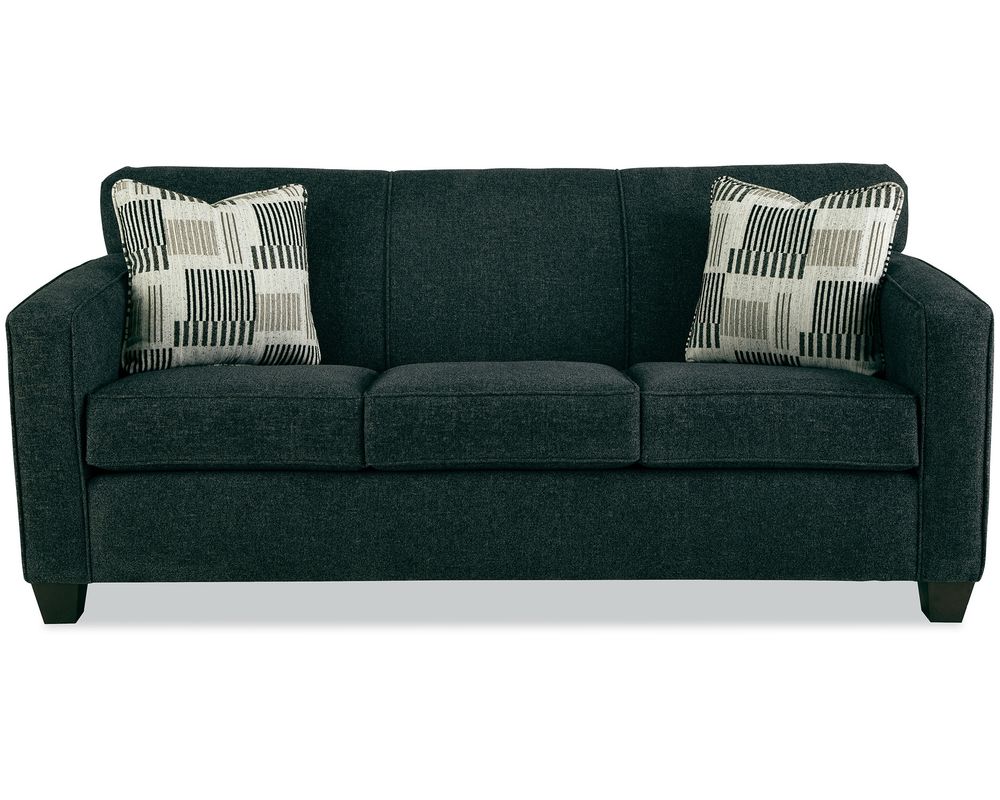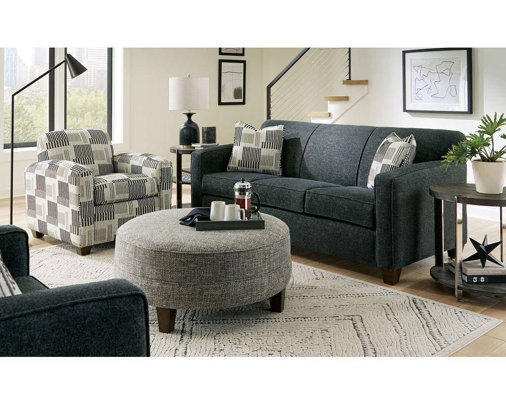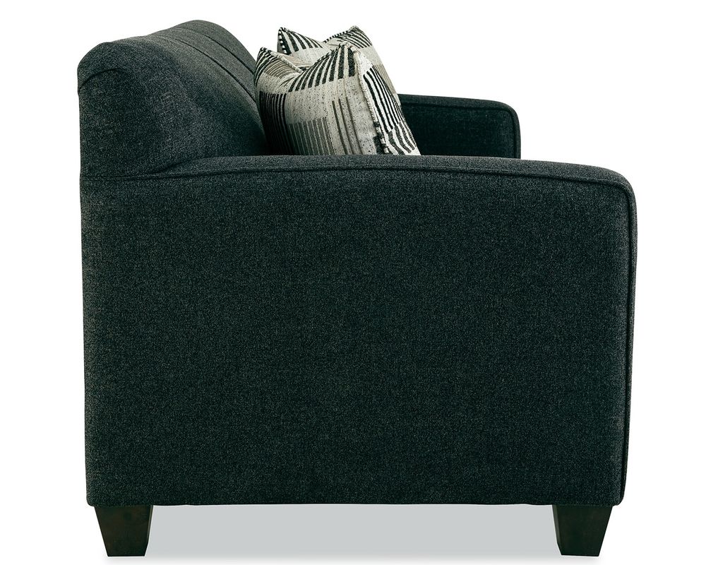 The Tibby 7520 Sofa brings a refined, contemporary look to your living space with clean lines and thoughtfully tailored details. Gently sloped track arms and a tight channeled back create a modern, structured silhouette, while welted detailing adds a polished finish. Low block legs anchor the design, giving the sofa a grounded, architectural presence that works beautifully in modern and transitional interiors.
