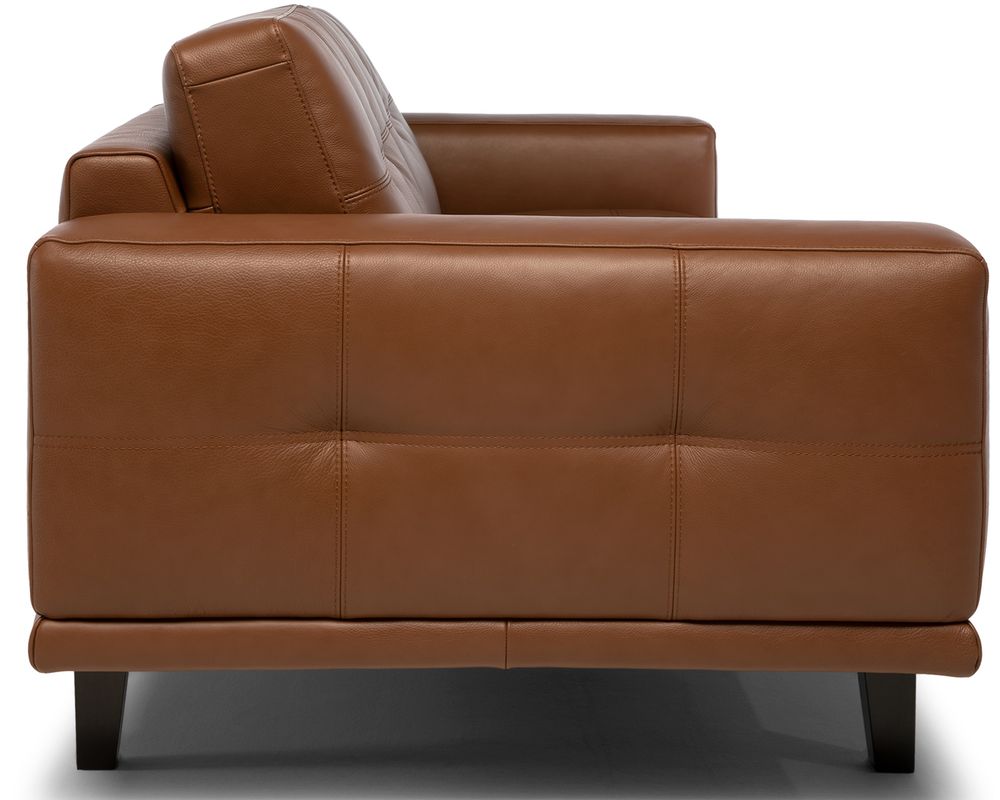 Natuzzi frames are made from high-quality materials, including solid wood, plywood, Masonite wrap, and oriented strand board. The leather furniture is made from 100% top-grain Italian leather hides in five different grades, each with distinct features. Natuzzi also uses Ecoflex Foam for padding.