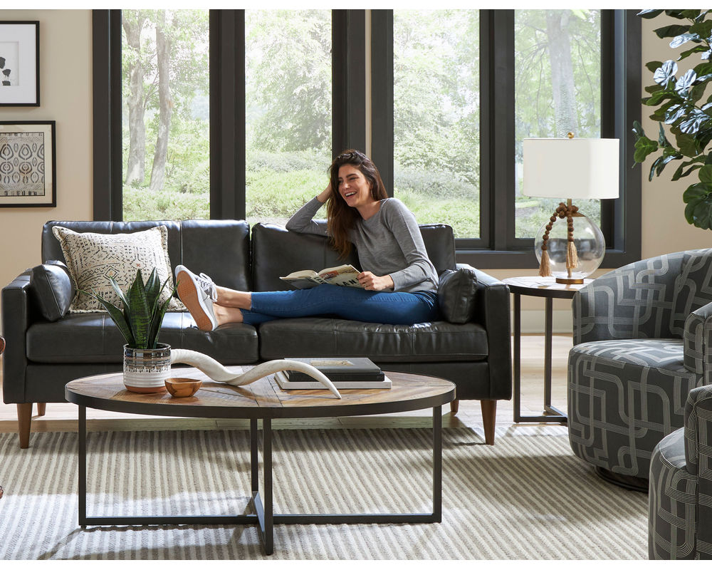 A: This model has top grain leather where your body touches and vinyl on the sides and back.