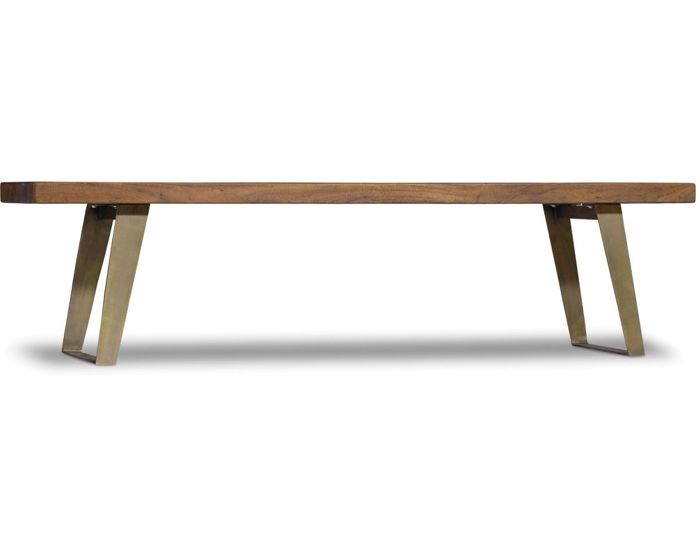 The table top is made of 2-inch thick complimentary slabs of Acacia whose interior edges are left in their natural forms.