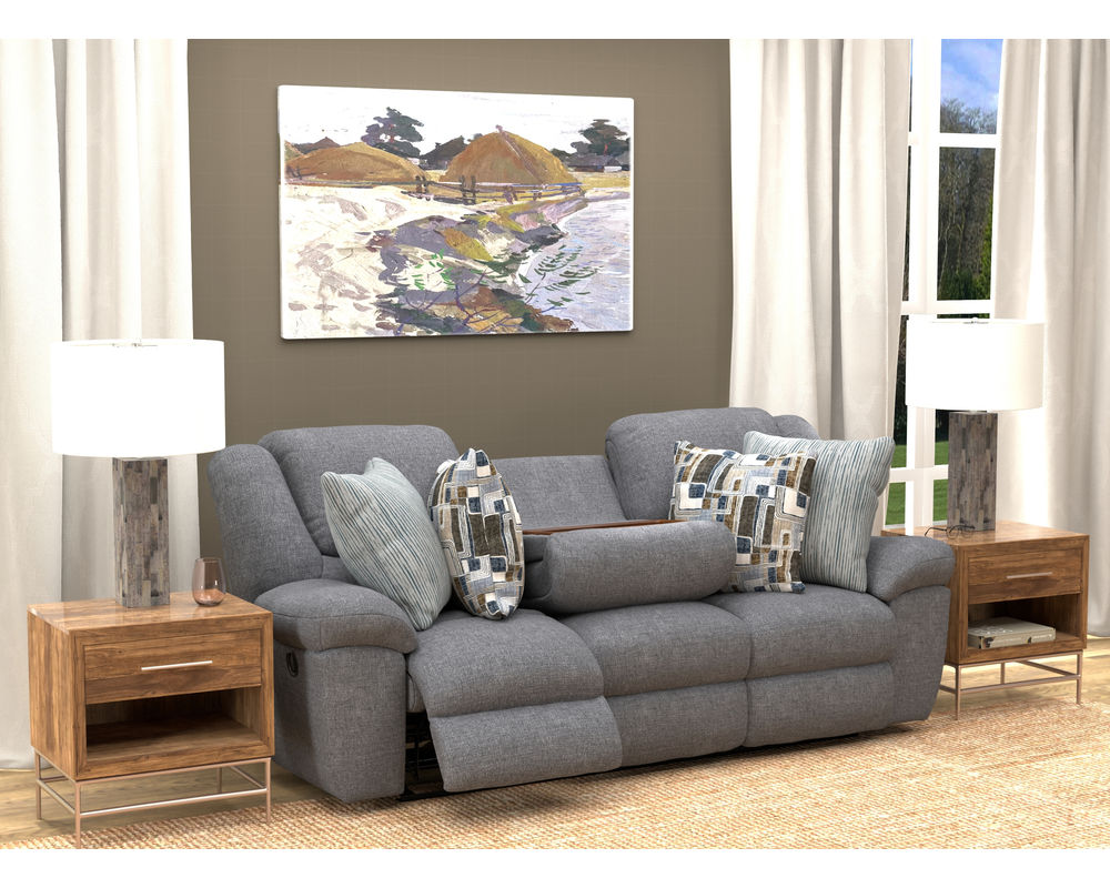 Meet the Trifecta 165 Reclining Sofa, a unique blend of comfort and style. This exceptional sofa boasts a drop-down table and three recliners, offering unparalleled relaxation. The option for power recline adds a touch of modernity, allowing you to adjust your seat with a simple touch. It's not just a sofa; it's a lifestyle upgrade.