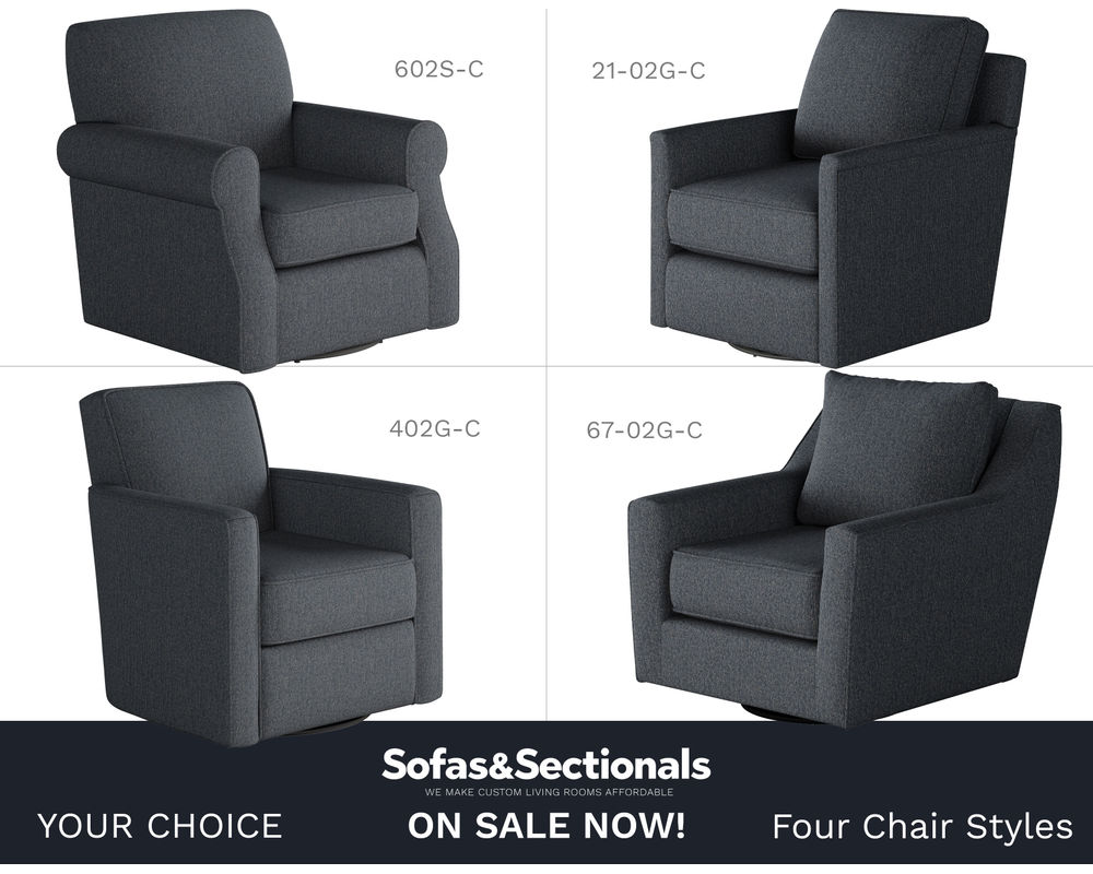 21-02G-C Swivel Glider The swivel glider features sleek track arms outlined with a small welt to give it flair and definition.