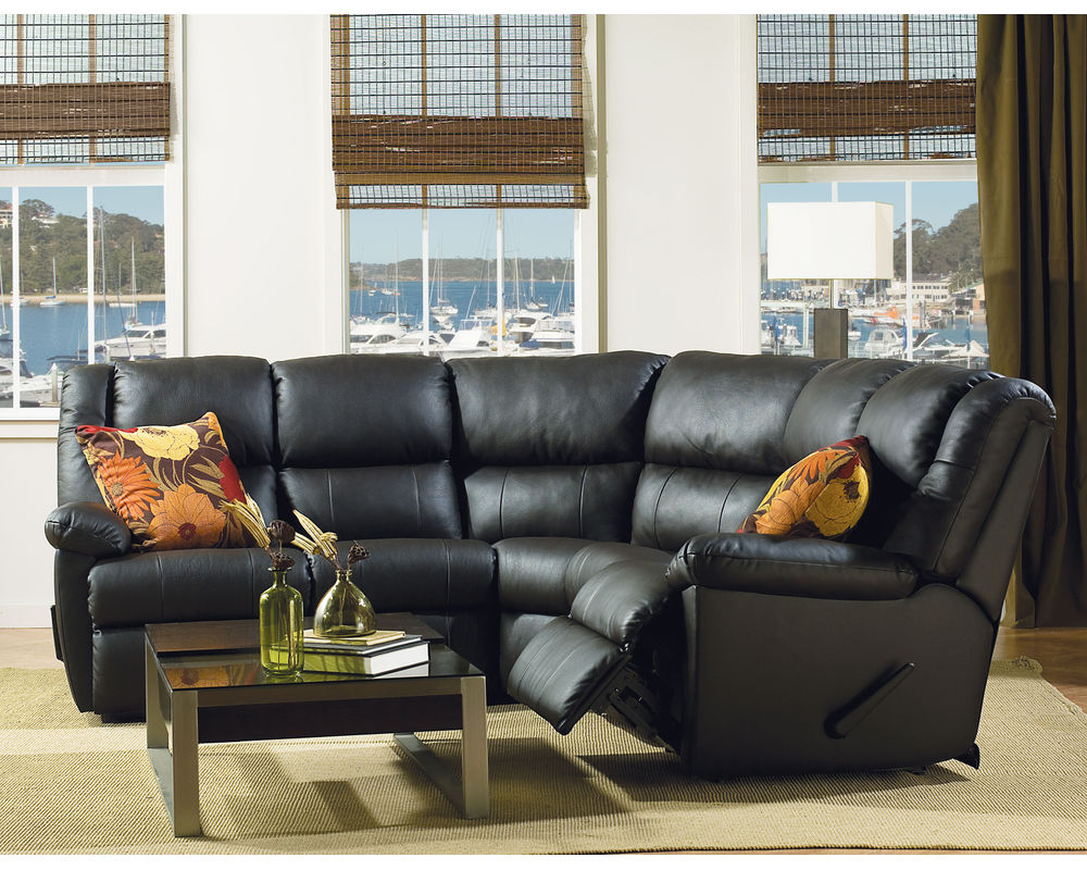 The Tundra 41043 Reclining Leather Sectional offers classic, plush comfort in a small enough footprint to fit into apartments, condos, and other small spaces. It features a fully padded chaise for total body support and optimal comfort in the fully reclined position, and the pillow-soft back cushions feature a fully padded wing and split back for both head and lumbar support. With a manual latch or power toggle switch, you can efficiently operate the reclining function and easily change angles. Available in a range of colors or with customizable options, you can personalize this sectional to match your unique style and space.