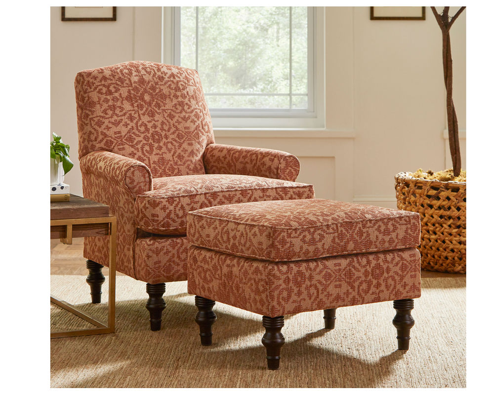 This Tyne 4210 Club Chair is the perfect addition to your living room or bedroom. It features a classic club chair style that can help redefine your space. With a tightly upholstered contoured back and luxuriously turned legs, this chair exudes elegance. The matching ottoman adds a touch of sophistication and allows you to kick your feet up after a long day. Stylish and inviting, this chair is sure to be the centerpiece of your room.