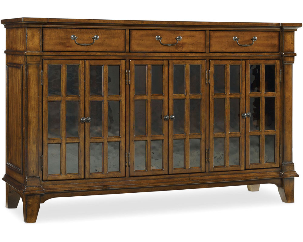 * Tynecastle Buffet Also Available* Six doors with seeded glass, Two adjustable wood shelves behind each doorwith Three felt-lined drawers and Center drawer has silverware tray.
