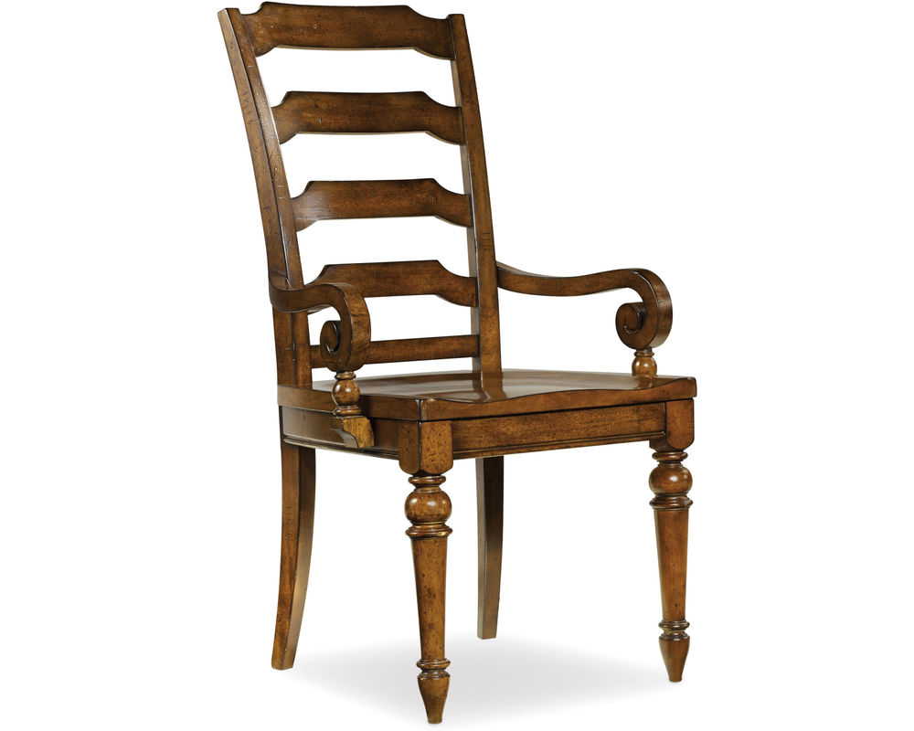 Tynecastle Ladderback Arm Chair Poplar Solids and Figured Alder Veneers in A warm, chestnut-colored, physically distressed finish over figured Alder veneers create a canvas of comfort and classic appeal for the Tynecastle collection, accented by custom hardware in an aged copper finish.