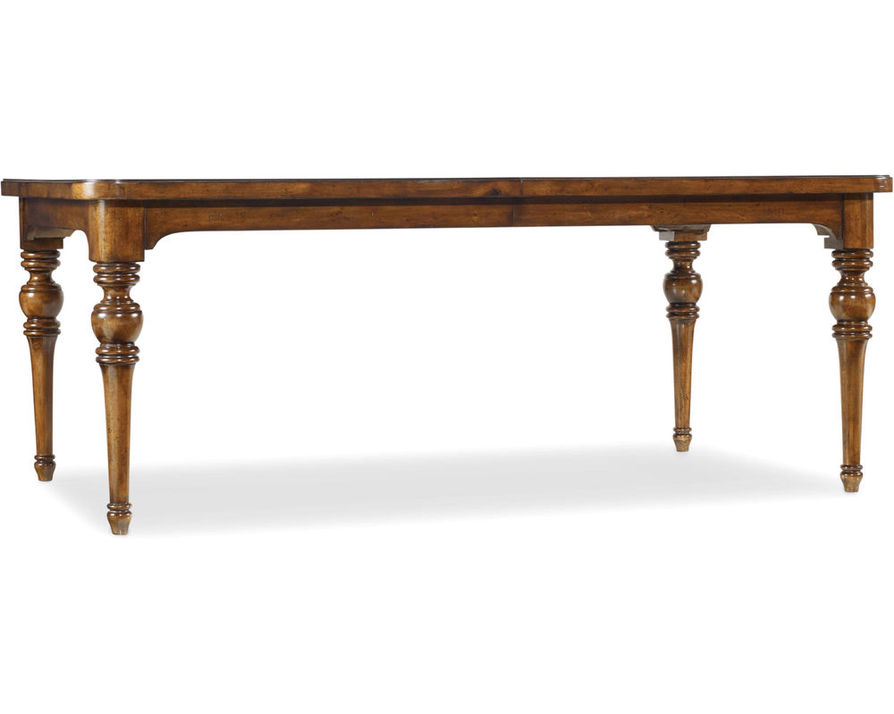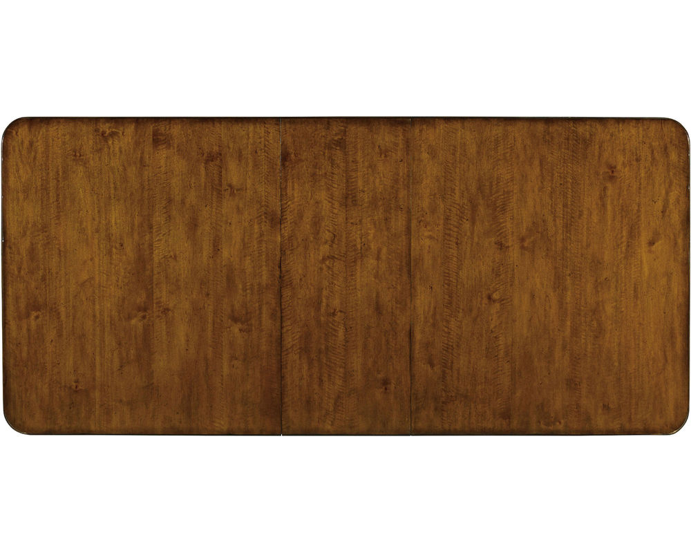 Tynecastle Rectangle Leg Dining Table Two 18" leaves extend table to 114" and Will seat up to ten guests. Poplar Solids and Figured Alder Veneers in A warm, chestnut-colored, physically distressed finish over figured Alder veneers create a canvas of comfort and classic appeal for the Tynecastle collection, accented by custom hardware in an aged copper finish.