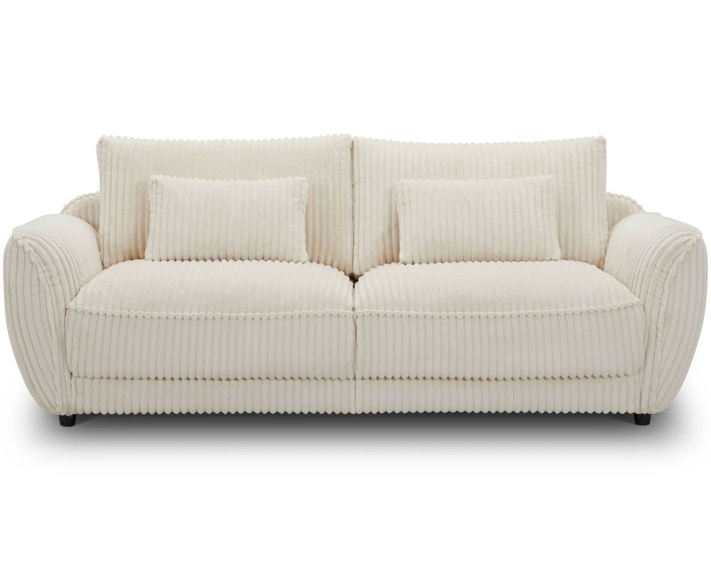 Experience ultimate comfort and style with chair and a half. The seat cushions are padded with high-density Dacron and topped with sterilized down and feathers for maximum plushness, providing a cloud-like feel. The low-seated frame creates a relaxed feel and accentuates the oversized cushion contours, perfect for lounging and unwinding. The chair includes coordinating comfort pillows and is generously scaled for sumptuous comfort. Exquisitely tailored and upholstered in an ultra-plush wide corded velvet and matching welt, this chair is sure to be a statement piece in any room. The accent pillows and seat cushions are encased in cotton, down-proof channeled ticking to help them keep their shape and prevent feather migration, ensuring the sofa maintains its plushness for years to come.