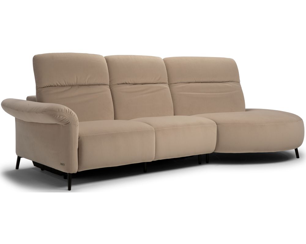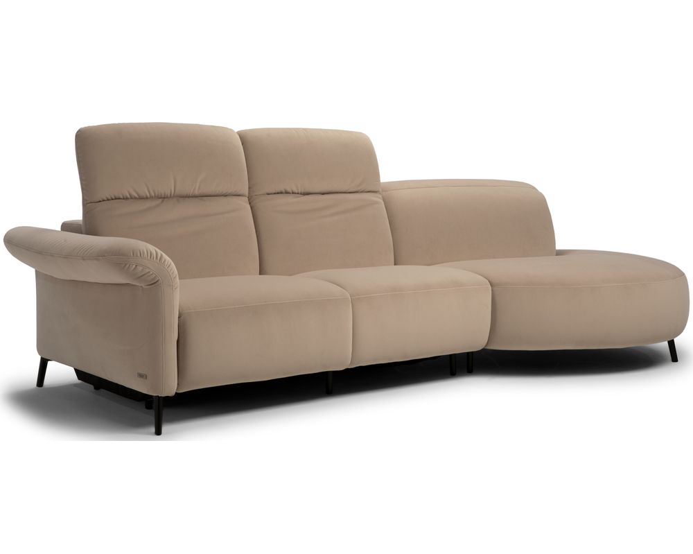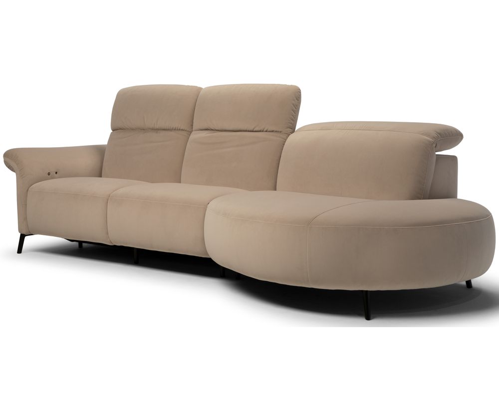 Not only is the Venezia sectional stylish and comfortable, but it also features practical elements such as manual-adjustable headrests for personalized comfort. The s-shaped iron bow arms add a touch of sophistication and can be manually adjusted for the perfect angle. The sofa is available in leather and fabric options and comes with sleek metal feet in a matte black finish, ensuring both style and functionality.