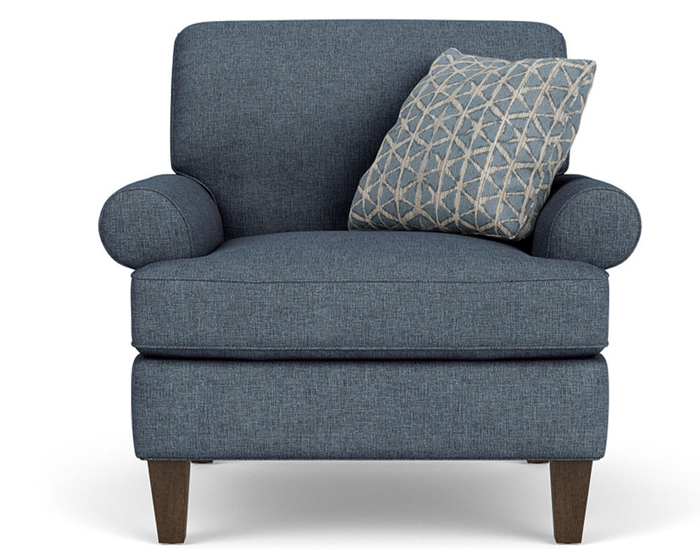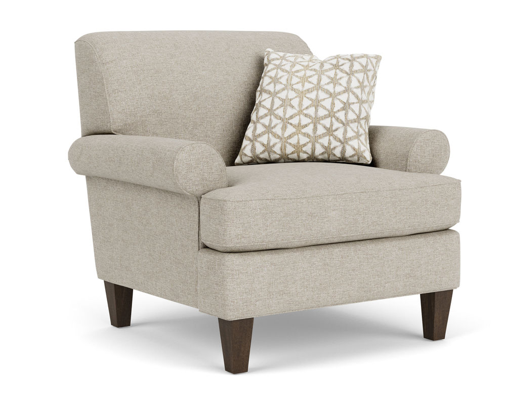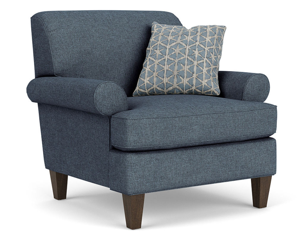 The Flexsteel Venture 5654 Chair is a perfect blend of classic and contemporary design. Its dramatic lines and classic proportions make it a stunning addition to any living space. The tall tapered legs add a modern twist to the chair, while the plush, tailored back offers a timeless look. The refined scale of the chair makes it suitable for multiple living spaces. The careful tailoring of all fabrics creates a unified aesthetic, with the exception of the outside back panels and welts. This chair is sure to add a luxurious touch to any room.