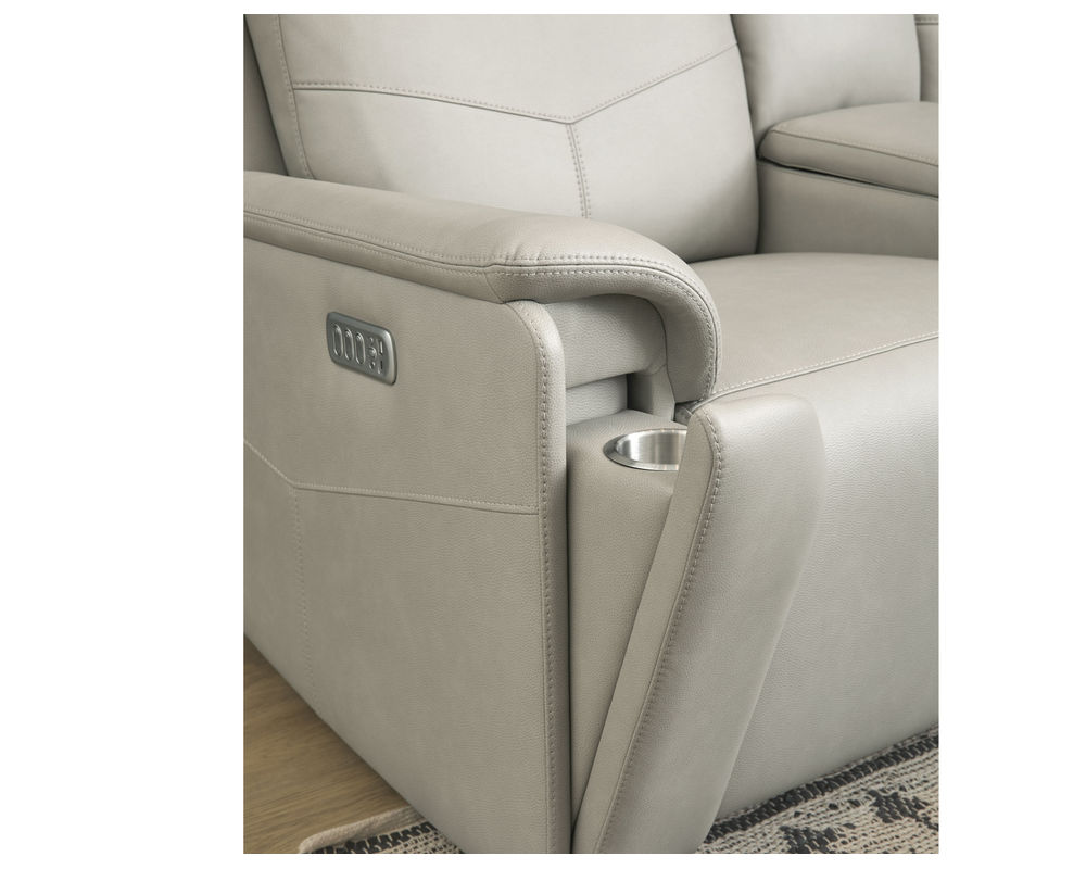 • Center, drop-down back cushion contains a storage compartment with USB-A and USB-C charging ports, wireless charging tray, two cupholders and touch-lighting
