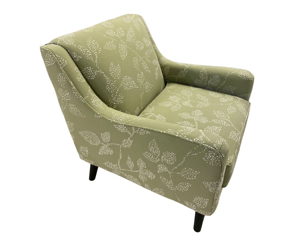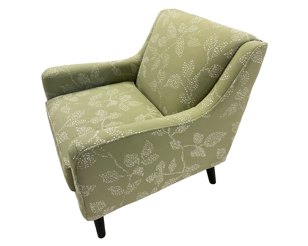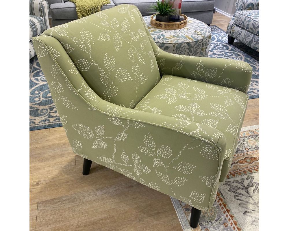 Add a splash of color and charm to your space with the 240 Vernon Sage Accent Chair from Fusion Furniture. Wrapped in a lively sage-green fabric adorned with delicate leaf patterns, this chair brings the beauty of nature indoors with a modern twist.