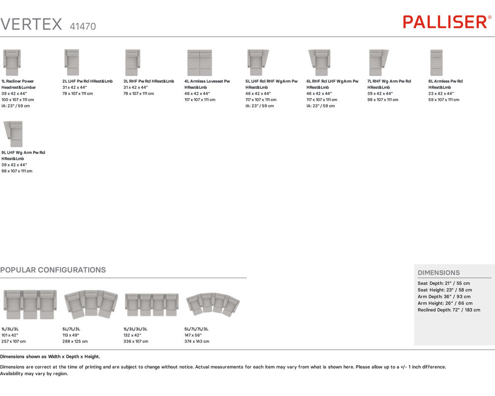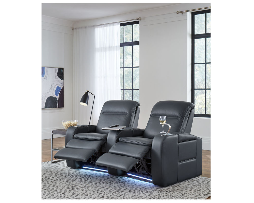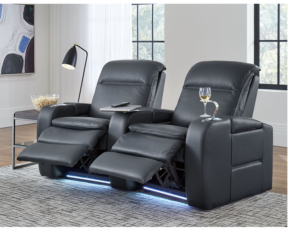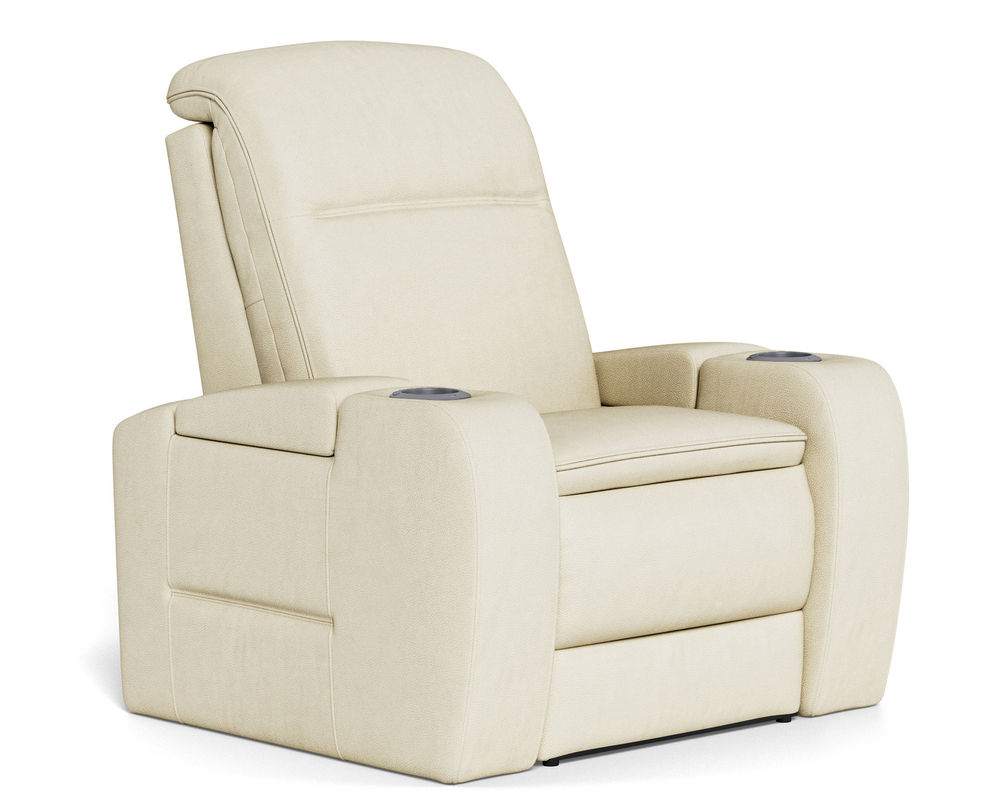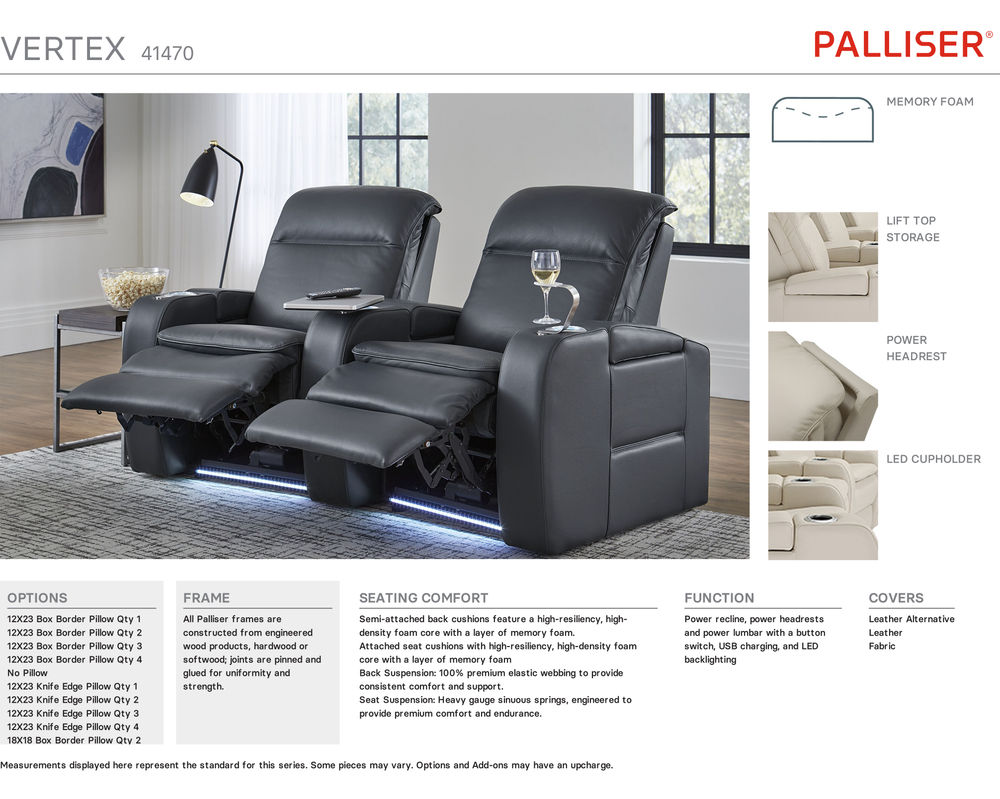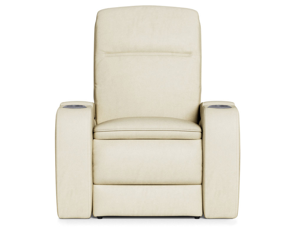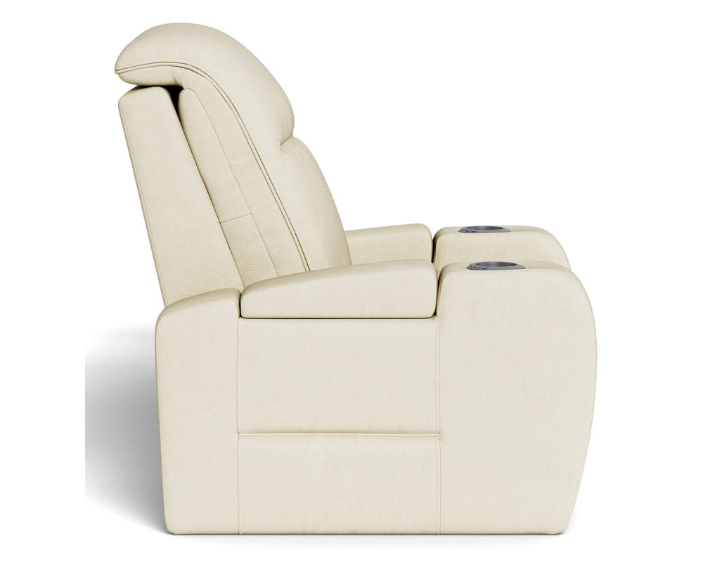 The Vertex is not just a seat, it's an experience. Power lumbar, headrest, and recline are the starring attractions in this modern motion seat. A memory set key allows you to program your ideal position and return to it automatically with the push of a button. All functions, including LED lighting in the cupholder with seven different color choices and three intensities, are conveniently controlled from the cupholder. The cupholder also features integrated smart USB charging that only draws power when used. The Vertex is an impressively engineered, stylish choice that will make a welcome addition to any home theater, and its modern features will surely impress you.