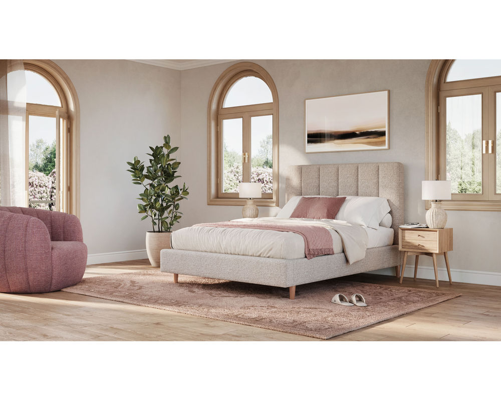 The Verttia bed's clean lines and crisp details make it the perfect showcase for your favorite bedding. Its versatile transitional style can easily suit any type of space, whether traditional or contemporary. You can choose from two headboard heights—54" or 64"—to best fit your room.