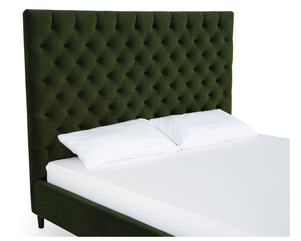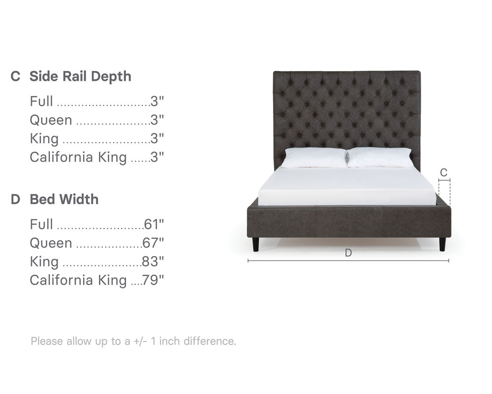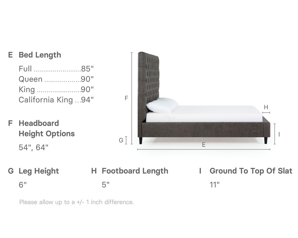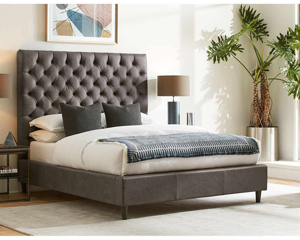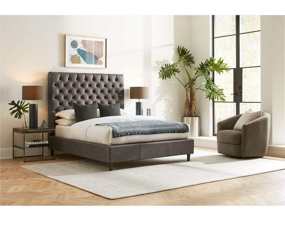 From Sofas and Sectionals.com: A true statement piece, the Vineyard features a deep button-tufted design reminiscent of a classic Chesterfield. This look will be right at home in traditional spaces or stand out as an eclectic addition to any bedroom. Available in 54" and 64" heights, this bed can cater to your preference and make a bold statement in any bedroom.