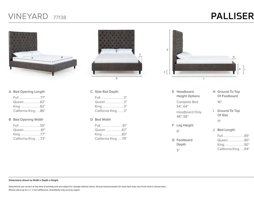 Choose from 175 fabrics and leathers to customize your Vineyard bed to match your style and bedroom decor. This bed is available in Full, Queen, King, and California King sizes, making it a versatile and stylish choice for any bedroom. Upgrade your sleeping experience with the Vineyard Complete Bed and add a touch of luxury to your home.