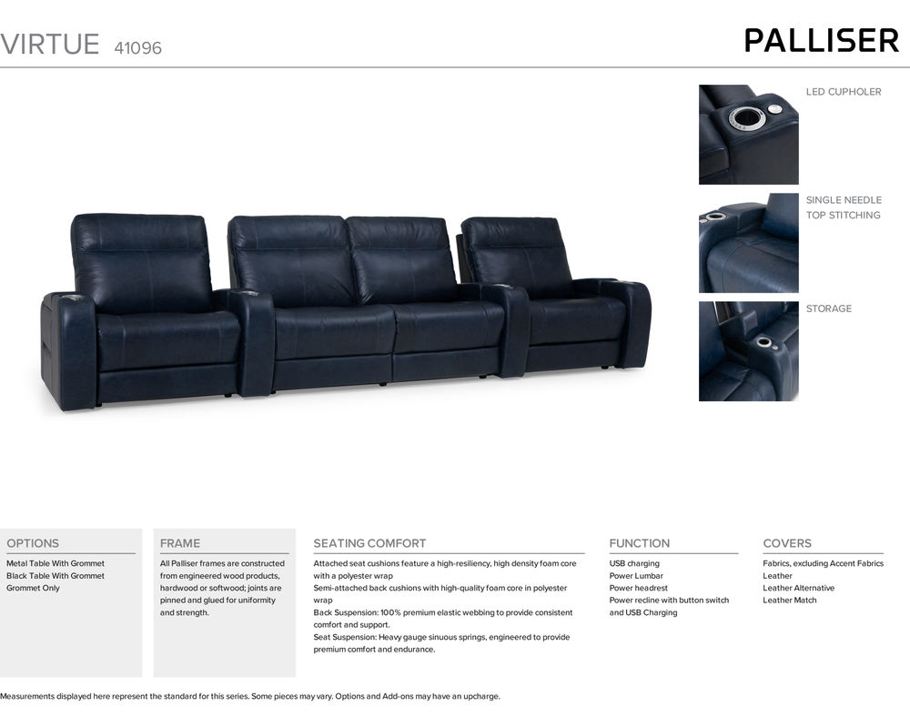 The Virtue 41096 Home Theater Reclining Sectional is perfect for any entertainment space. With its sleek and modern design, this sectional will transform your movie nights into a luxurious experience, making you feel indulged and pampered. Its contemporary stitching and exaggerated extra-wide seats create a stunning profile that will impress any guest.