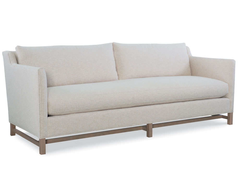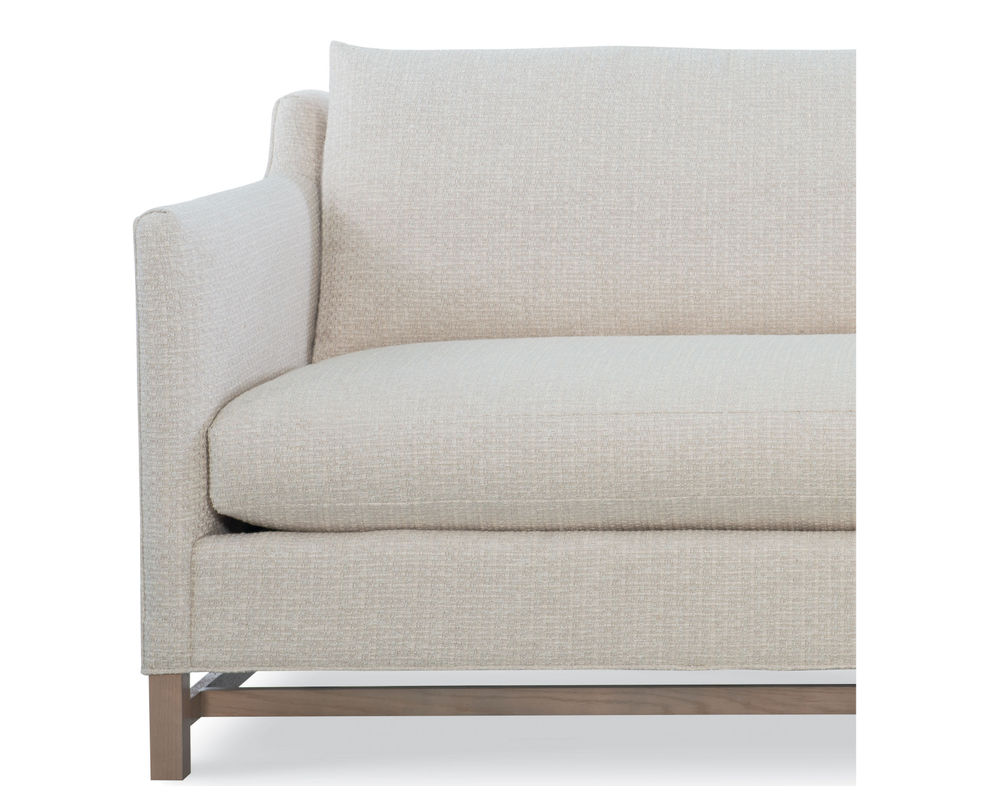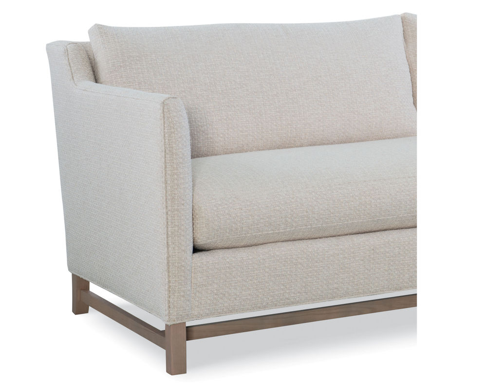 Box Border Back. Weltless. Oak wood legs; wood grain pattern is a natural characteristic of oak.