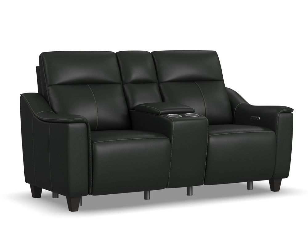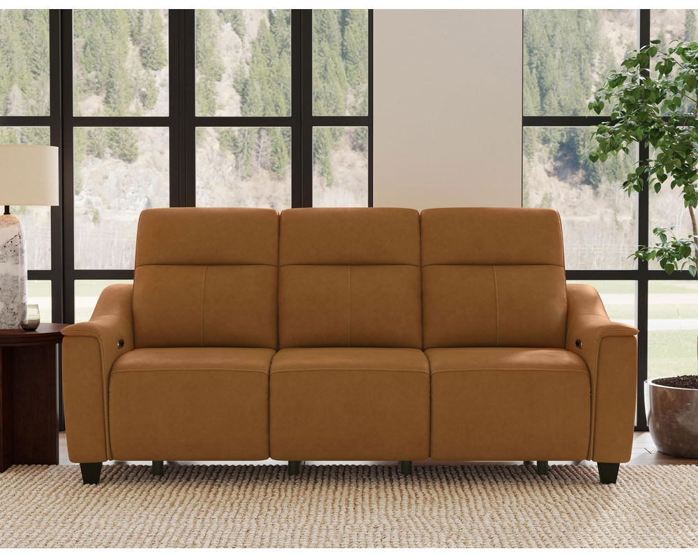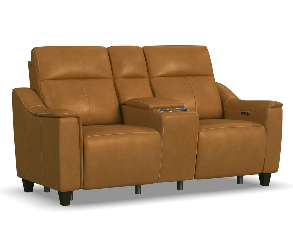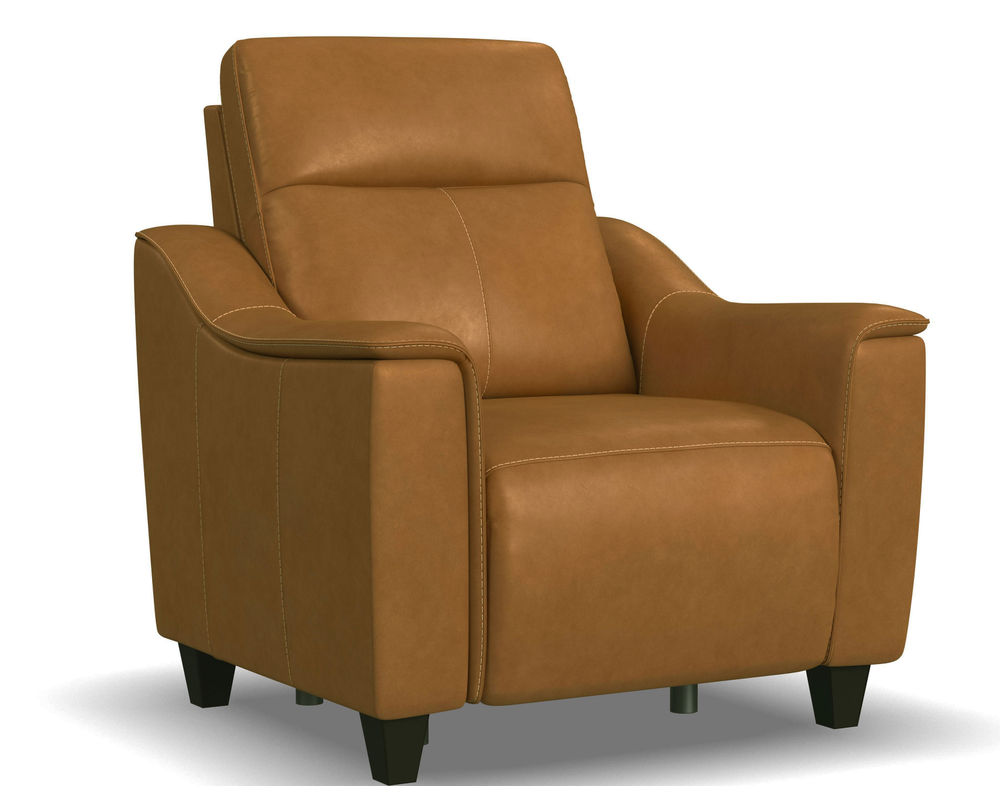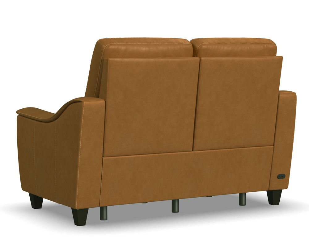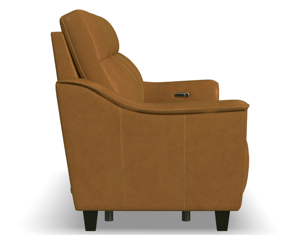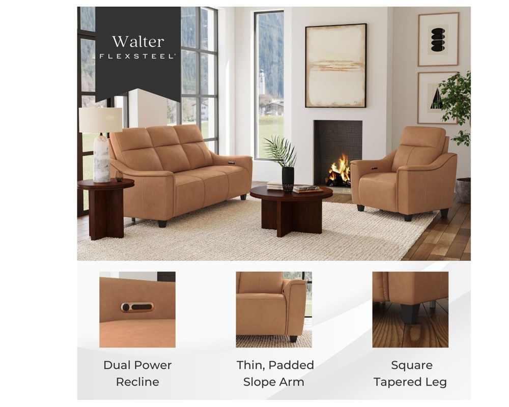 The Flexsteel Walter 1125 Reclining Sofa combines modern style with motion technology, giving you the best of both worlds. With thin pad-over sloped track arms, square tapered legs, and flat seats, the Walter sofa looks like stationary furniture, but with the comfort of motion seating. You can adjust the recline, power headrests, and extended footrests for ultimate relaxation, and the high, divided back offers extra shoulder support. For added convenience, this sofa also includes built-in ports for charging your devices. Plus, it comes in two colors of durable leather, so it will stay looking beautiful for years to come. With the Walter Reclining Sofa, you can have the perfect balance of style and comfort.