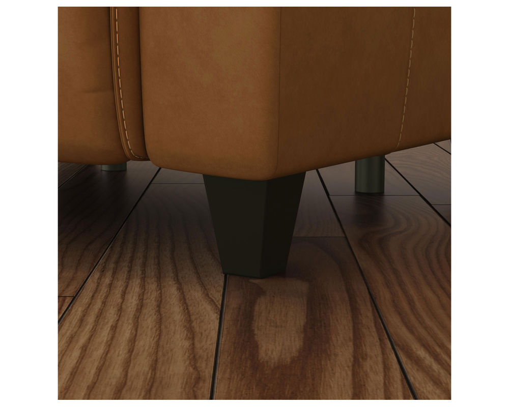 • Thin, padded slope arms sit on a dark brown square tapered leg
