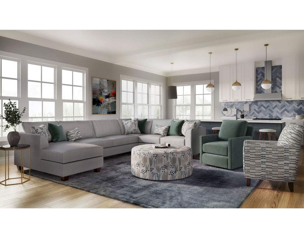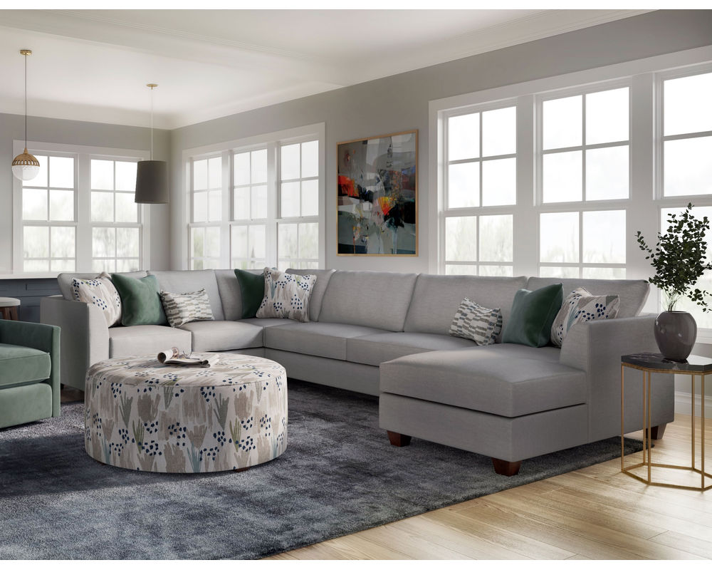 The Wendy Linen Sectional features an assortment of pieces to create your own look. Wendy Linen comes with 8 contrasting pillows in three different fabrics, 2 of which are contrasting kidney pillows. The box border seat cushions and welted inside back cushions are all loose and reversible allowing you to rotate them to prolong the life of the cores as well as the life of the fabric. The chaise will not rotate due to the mini t-cushion. Wendy Linen features flared arms and dark coffee tapered wood legs. Sleeper sectional is available featuring an innerspring coil mattress that provides maximum comfort while sleeping.