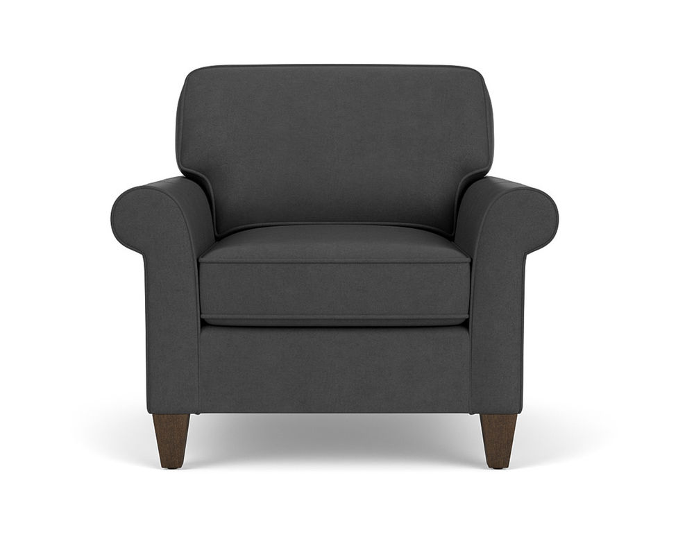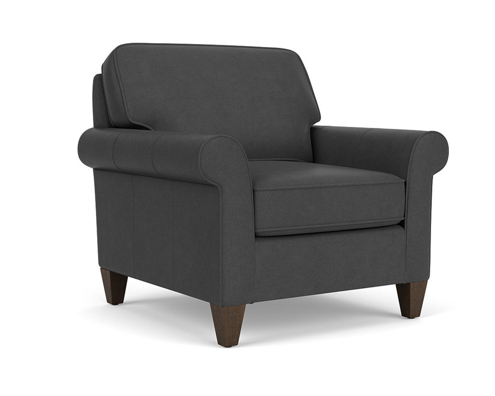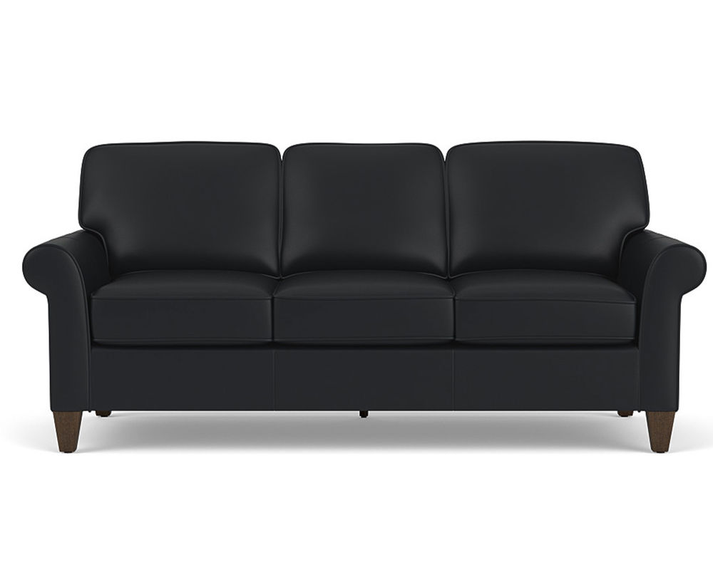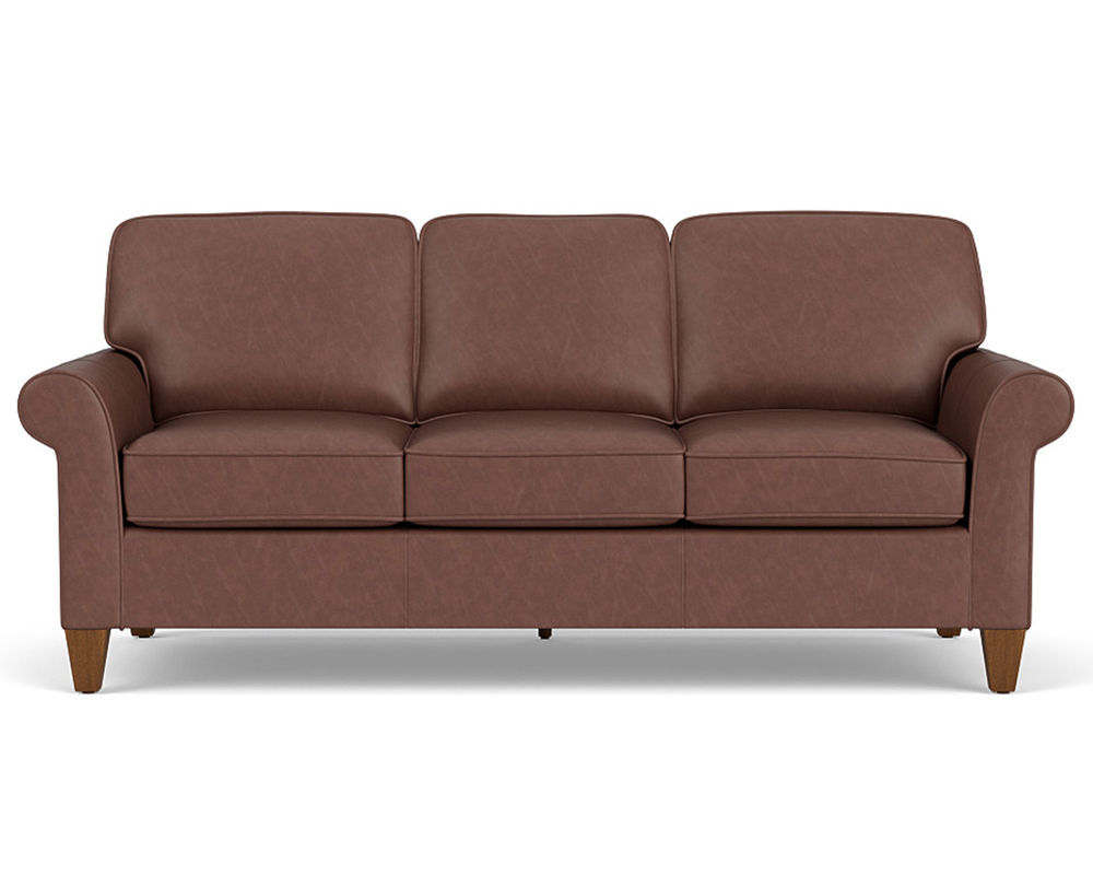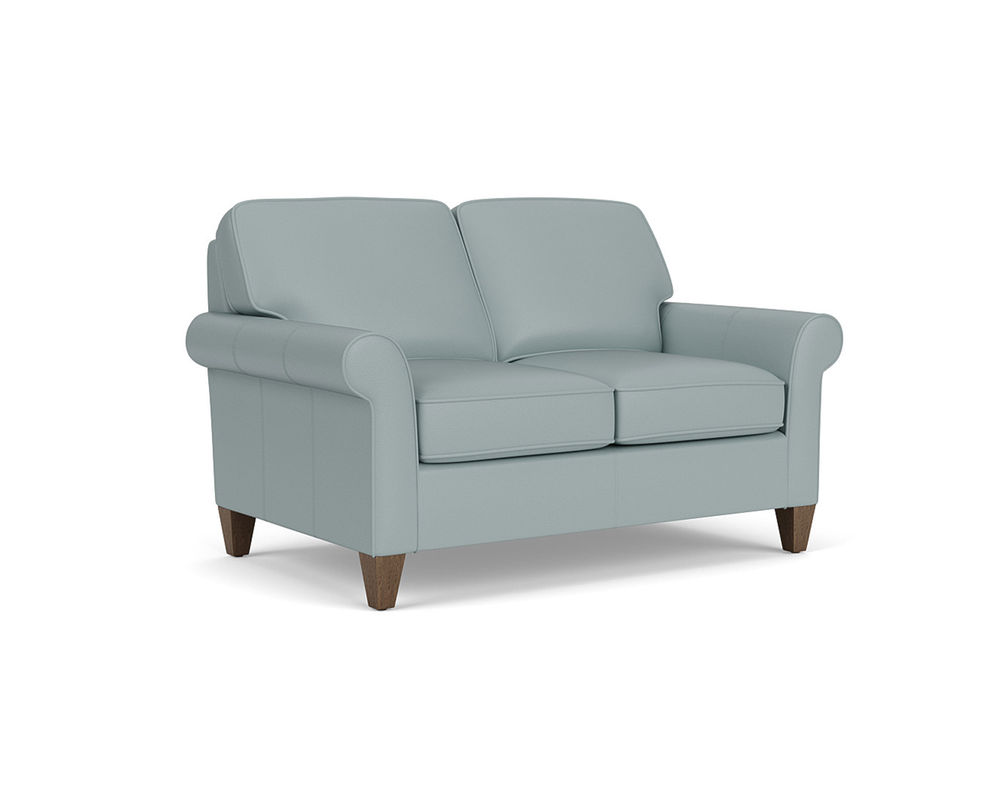 Lean back and look sophisticated in this Westside classic. Rolled arms and tapered wooden legs elevate an angled profile so you can sit back and relax elegantly. Soft boxed seat and back cushions paired with quality construction provide years of comfortable seating for you and your family. Flexsteel only uses the finest leathers guaranteed to last. Over 40 leather colors to select from.