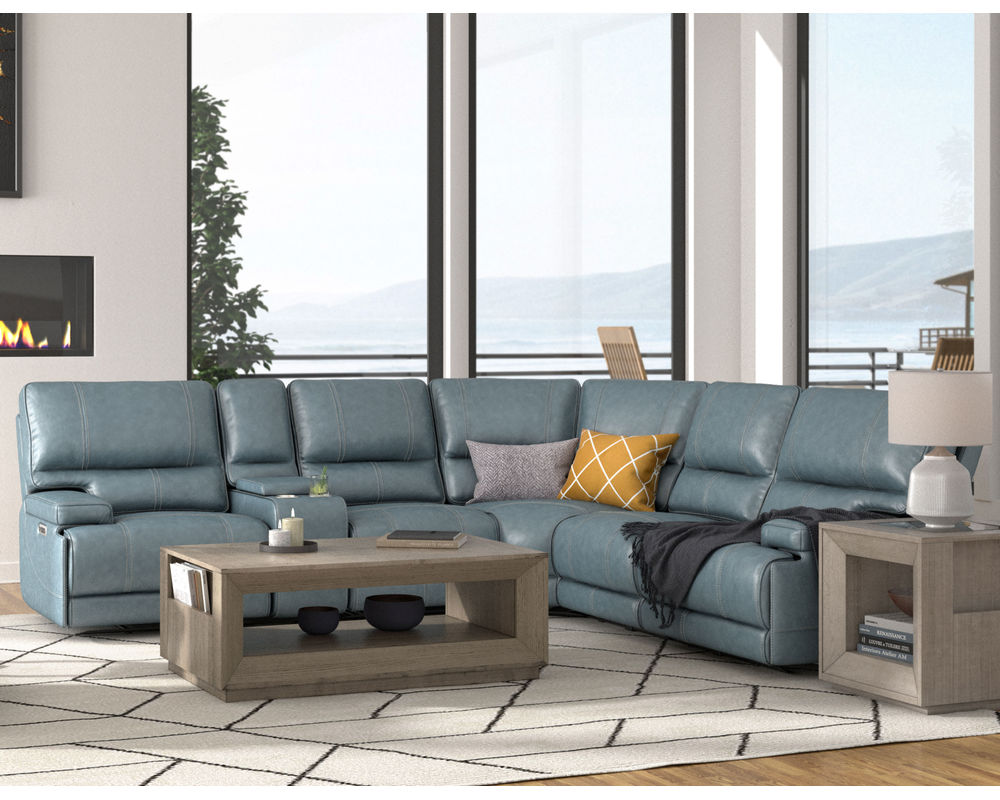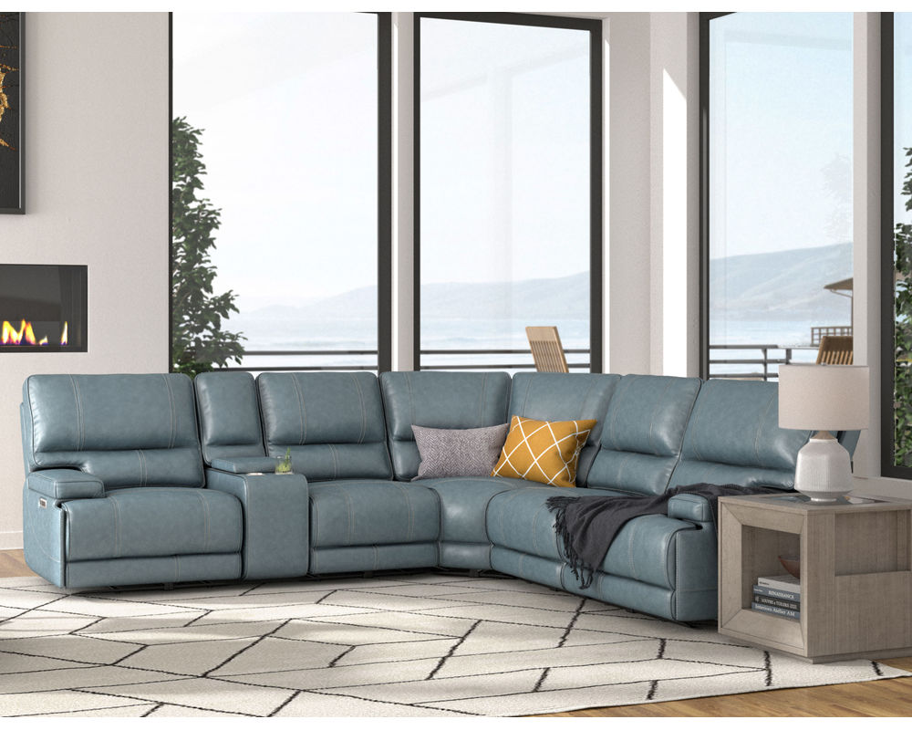 Whitman FreeMotion Cordless Power Reclining Sectional (Battery Operated) in Leather Azure