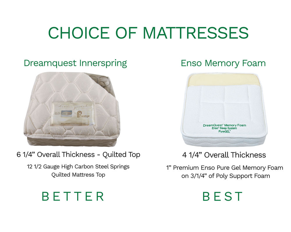 Enso Memory Foam Mattress - This mattress offers a thick layer of latex foam on top of high density foam. This is similar to memory foam but doesn't get hot when you sleep. The overall mattress is 5 inches thick.