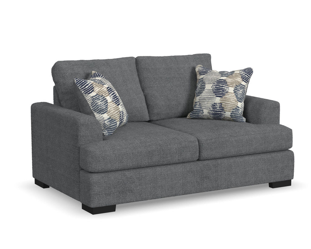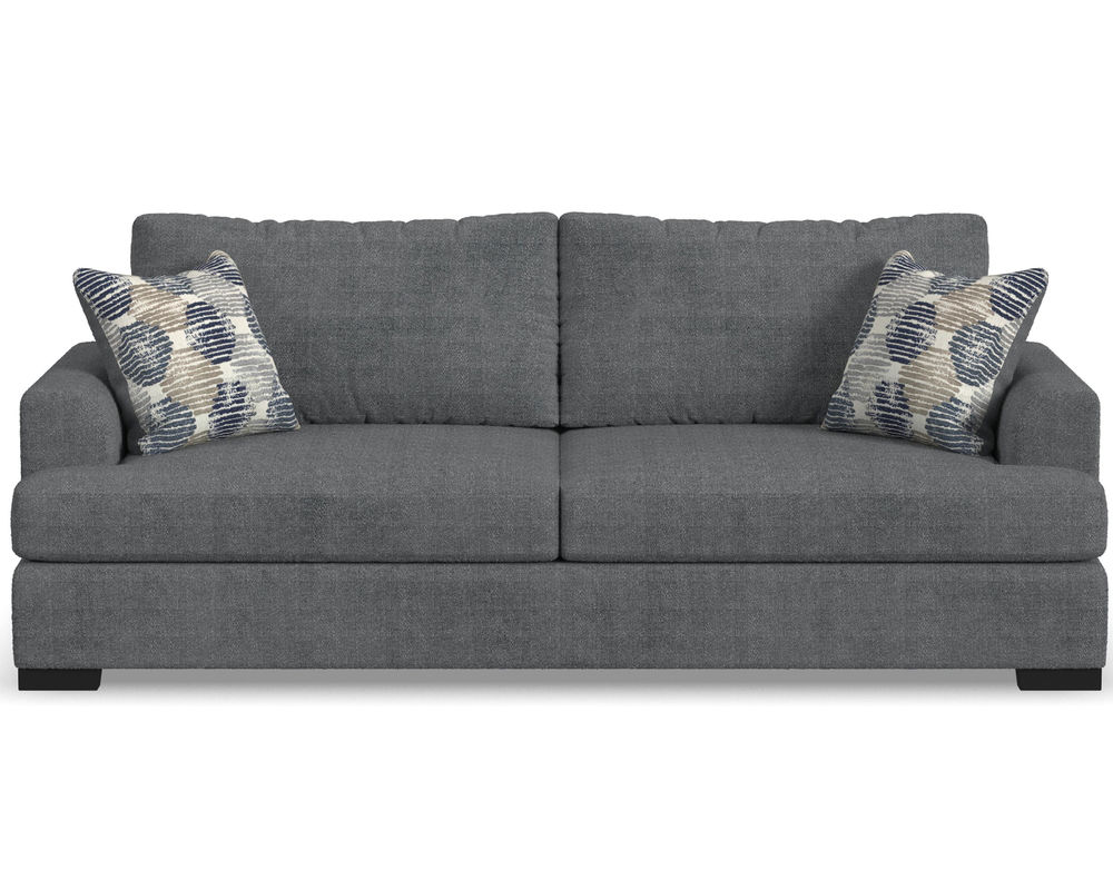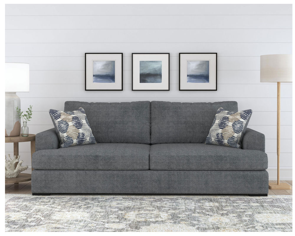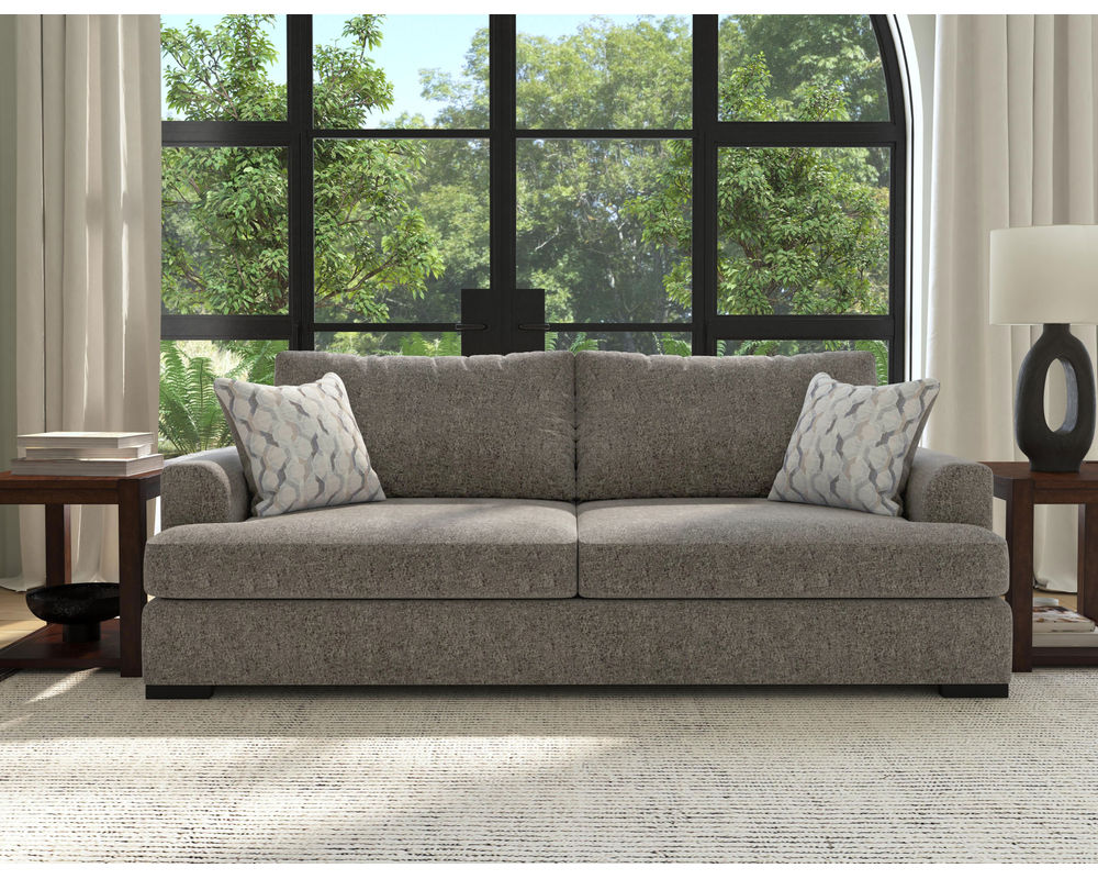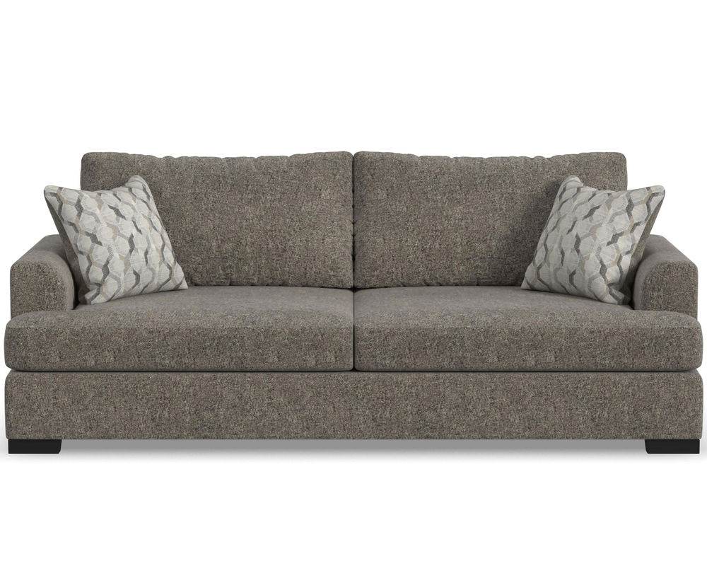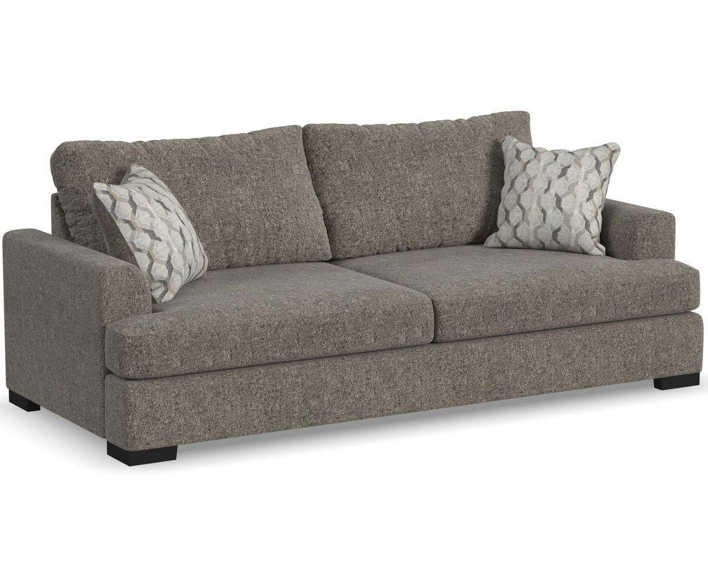 From Sofas and Sectionals.com—Experience the ultimate laid-back comfort with the Willow 94" Sofa. This stylish piece features a deep seat and soft flare arms for a breezy look to elevate your home decor. The sofa is designed with two wide, loose back cushions for a more contemporary aesthetic, while the two wide, deep, and durable seat cushions invite you to sink in and relax. The low-to-the-ground design is complemented by black recessed block legs, adding a touch of modern sophistication. Choose from two carefully selected fabric combinations to make it yours and personalize it with the two-sided accent pillows. Add the Willow 94" Sofa to your living room and enjoy the perfect balance of style and comfort.