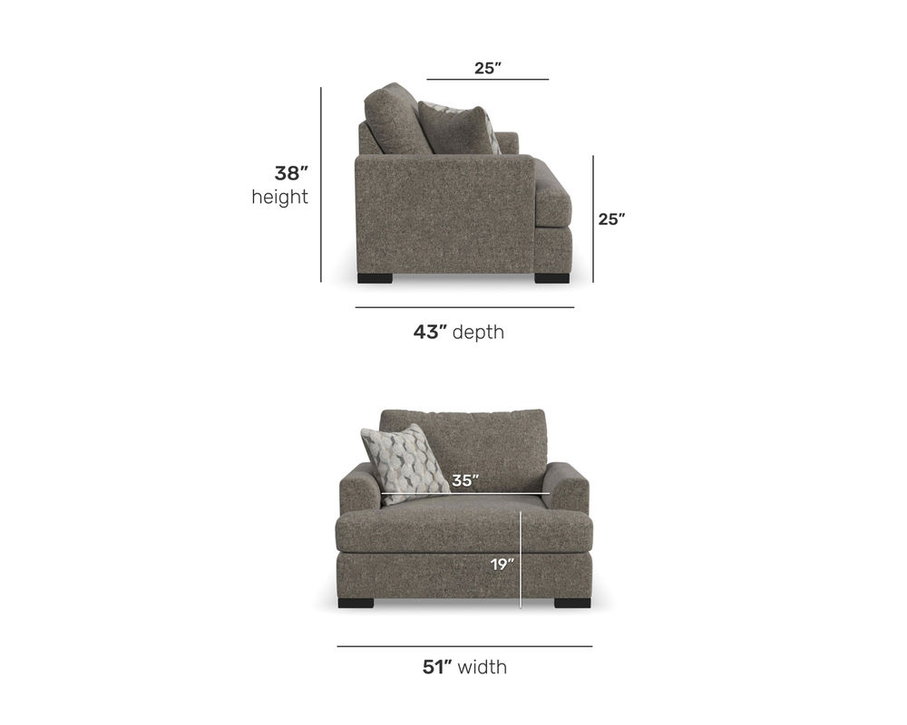 • Removable and reversible T-shaped foam seat cushions have an 8” thick core, designed to keep their shape over time, are finished with a soft fiber wrap for plush comfort