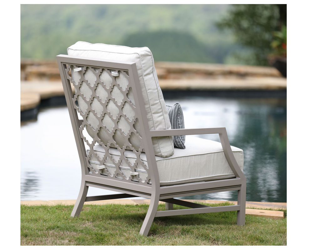 Featuring a sophisticated lattice design, our Willow collection offers feminine details crafted in durable aluminum, made in USA. With a unique design, the Willow seating collection will provide years of comfort and beauty to any outdoor room.