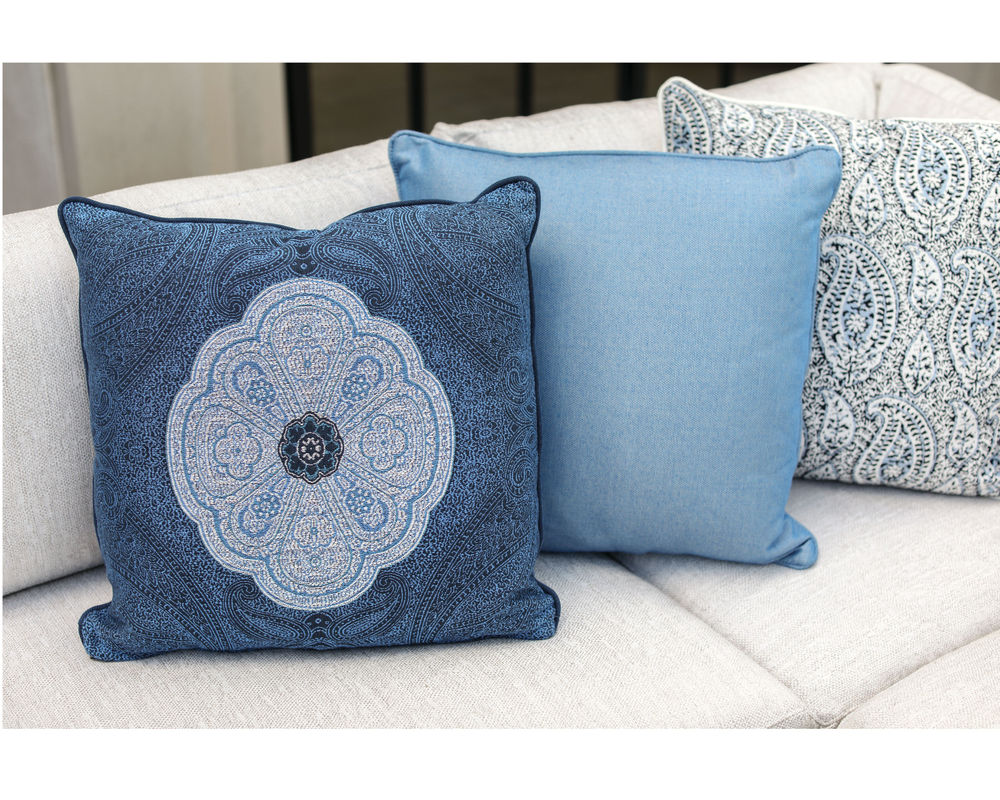The cushion construction or all LANE VENTURE CUSTOM CASUAL collections is a fiber wrapped 1.8 density foam core with a sonic welded water-resistant ticking – accord fabric to keep moisture out of the cushions. The cushion style is reversible.