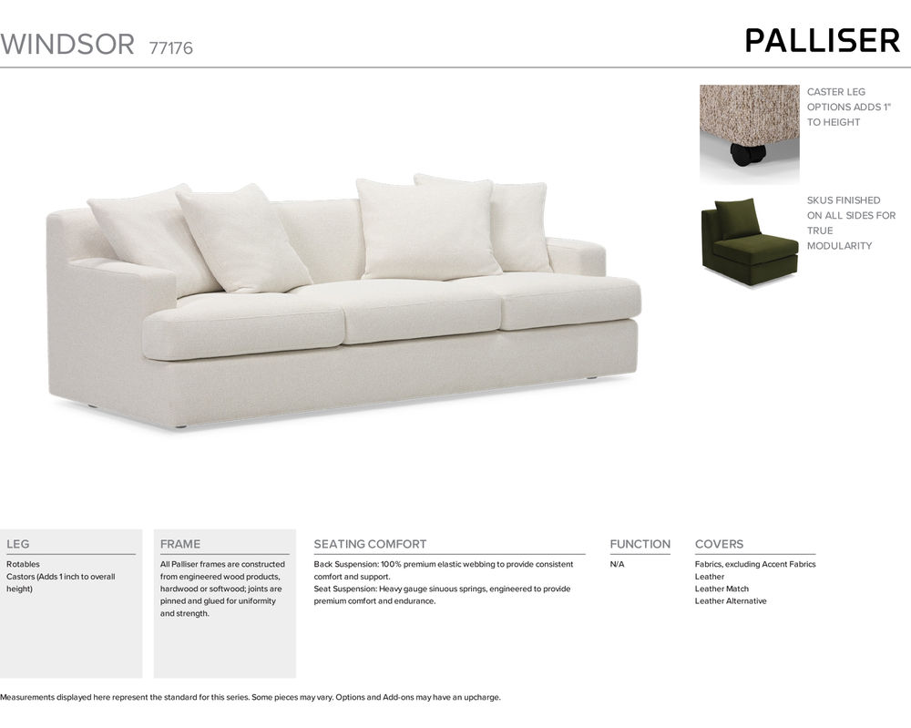 Elevated Design, Everyday Comfort The Windsor 77176 Sofa redefines elegance with its clean lines, refined tailoring, and inviting comfort. With a gently structured silhouette and T-cushion seating, Windsor blends formal beauty with casual ease—perfect for those who appreciate both aesthetics and relaxation.